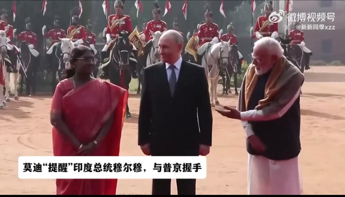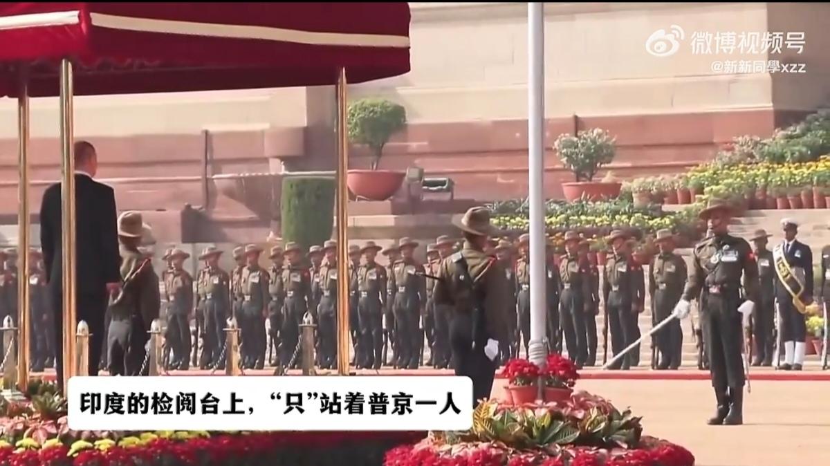 印度这是什么礼节?迎接普京,让普京一个人站检阅台,一个人走红地毯去检阅仪仗队,莫迪在棚子里坐着。 莫迪亲自到机场迎接,还和普京并肩走过红毯,两人热情拥抱、同乘专车,全程互动密切。欢迎仪式上有印度传统舞蹈队表演, 沿途街道挂着俄印两国国旗和"印俄友谊长存” 标语,氛围热烈。 就是检阅仪仗队有点尴尬,感觉像走秀,莫迪众人像观众。