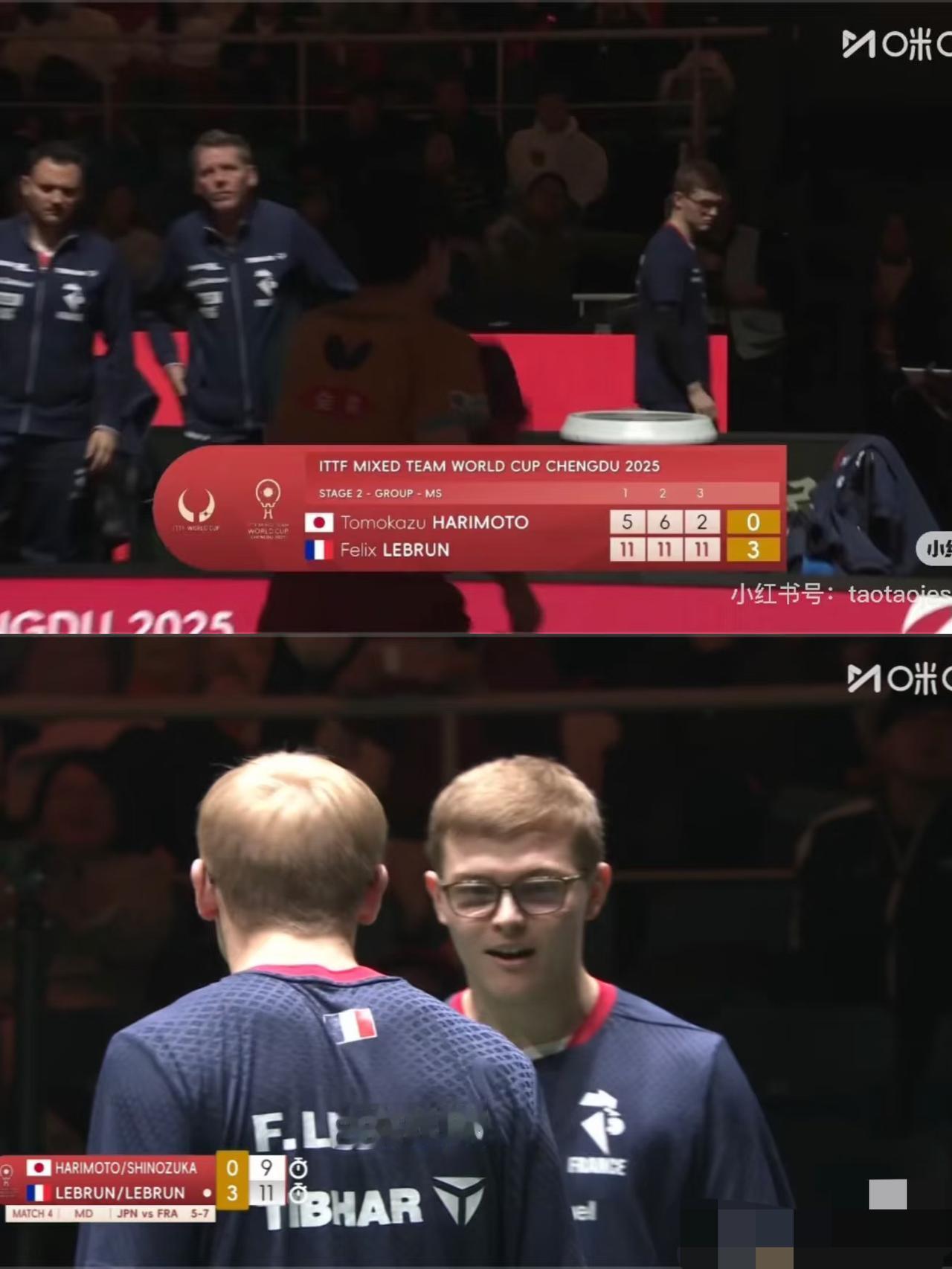 张本智和连输小勒布伦六局—输完男单输男双 勒布伦兄弟在混团真的是燃尽了, 可惜女队太拉垮, 不然法国队能进四强, 成都混团第二阶段最后一轮比赛, 张本智和0:3小勒布伦, 男双张本/大登0:3勒布伦兄弟, 张本智和休息三场比赛, 再次上场,喜提🥚! 所以还有不到三年的时间, 法国队是不容小觑的对手!