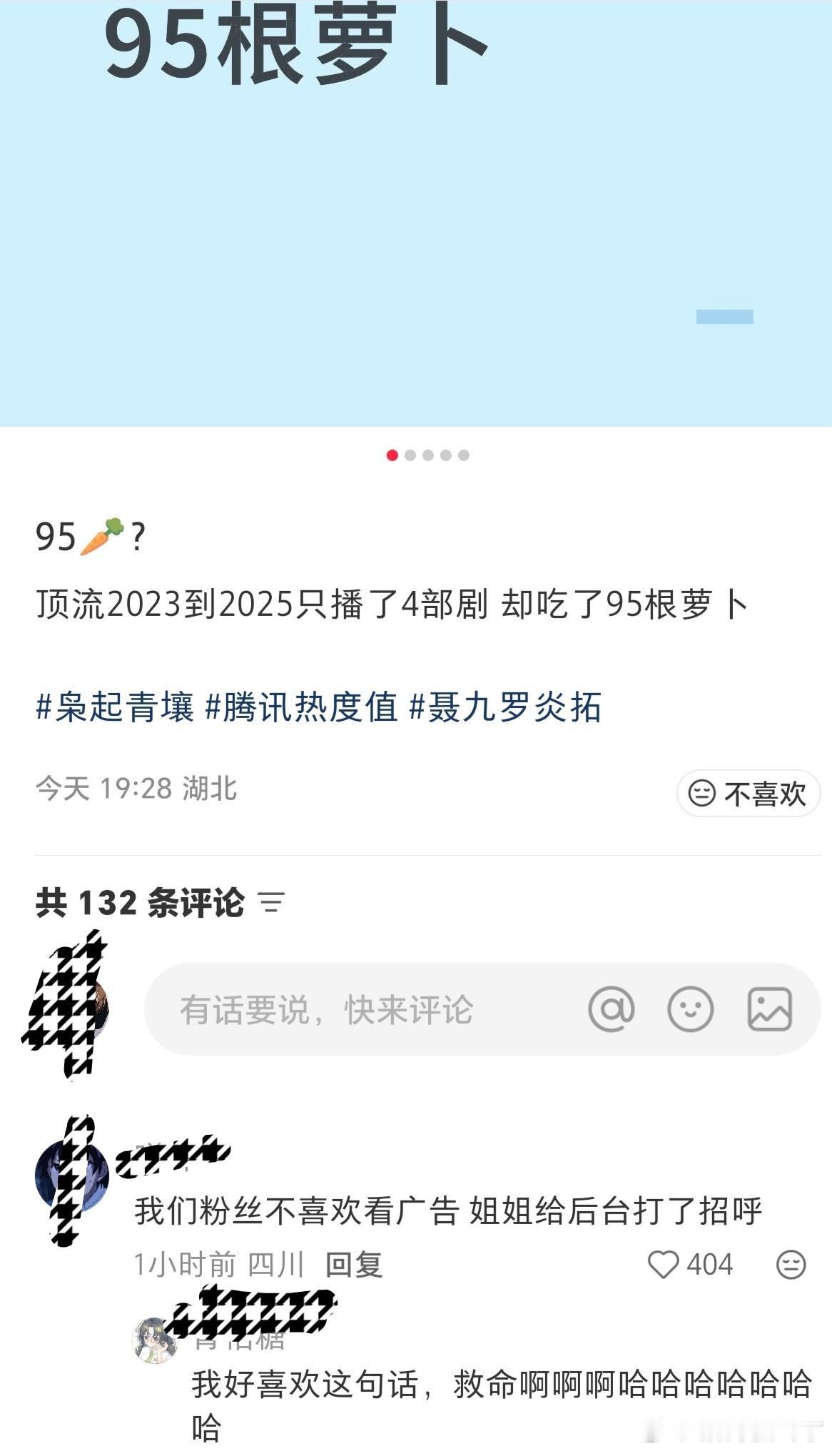 “我们粉丝不喜欢看广告, 姐姐给后台打了招呼”