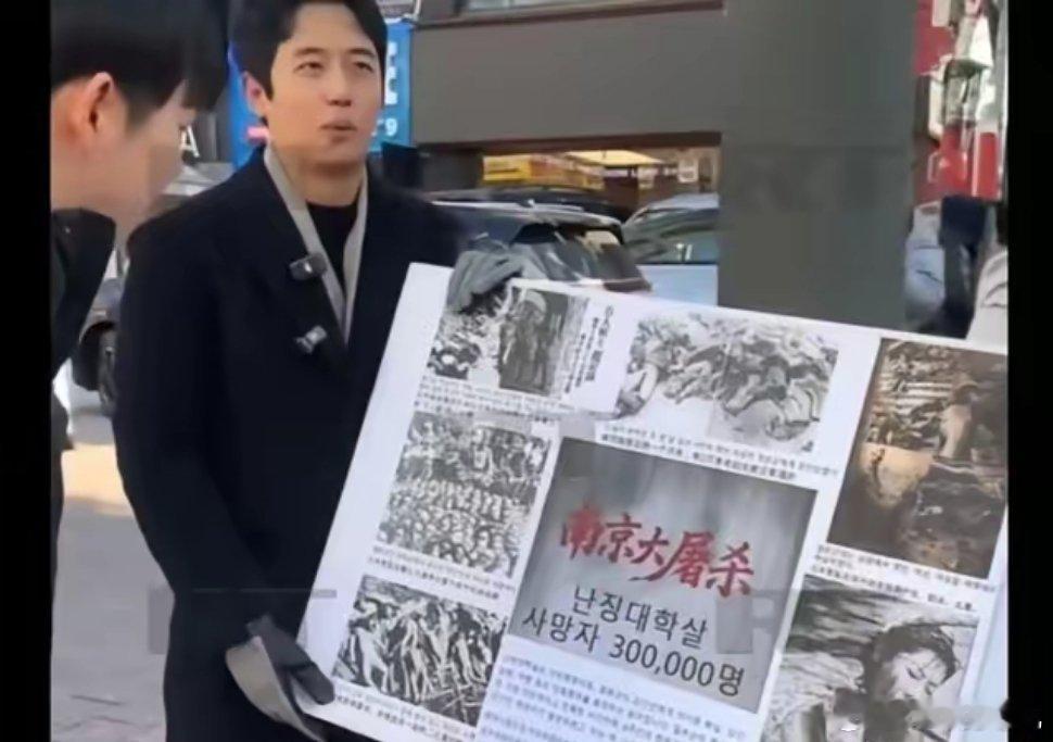 近日,有韩国网友拍摄到韩国民众在街头自发向行人介绍南京大屠杀的历史。视频显示,这位韩国民众手举写有韩文内容的南京大屠杀历史海报,并在身旁放置了一桶白色鲜花。他向路人耐心讲述历史真相,引发不少韩国网友关注与讨论。