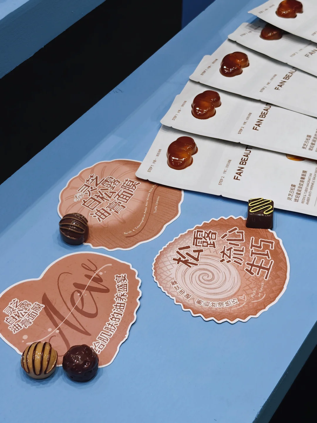 💙蓝色甜品站的概念很可爱,马卡龙、黄油曲奇、松露流心巧克力、香草泡芙……还真以为来到了甜品店,少女心爆棚。所有的产品现场可以试用,现场打卡还可🉐️护手霜小样