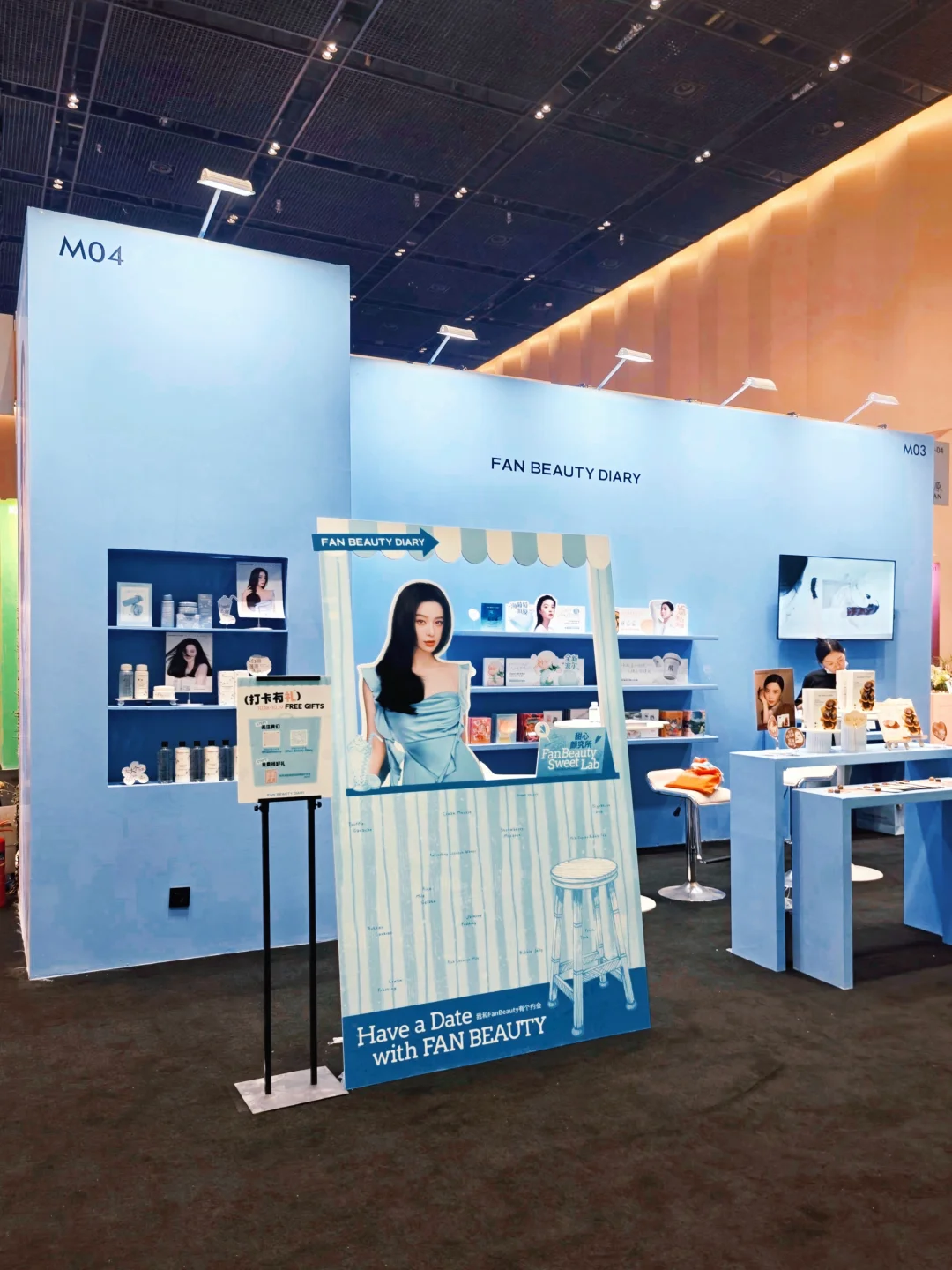 💙FanBeauty展位在1f美护上海的中心位置,整体的粉蓝色➕范冰冰的大海报十分显眼。这个牌子这几年一直有关注,作为“面膜女王”,范冰冰投身美妆行业仅仅几年就成绩斐然,自研发的面膜为主的产品卖得风生水起(据说2024年卖了14.5亿,8月在大马屈臣氏线下卖爆),真不愧是人生的大女主。