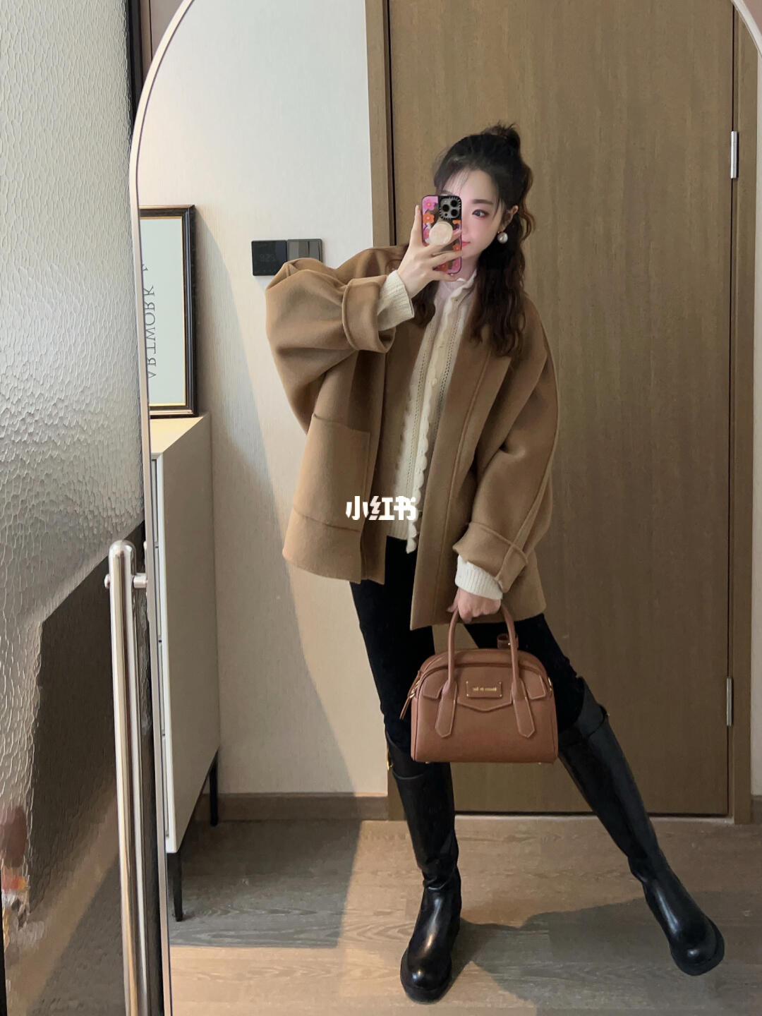 秋冬热爱基础款!短大衣配长靴真的太显瘦啦!