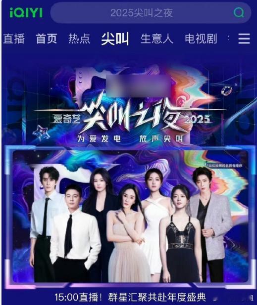 尖叫之夜海报站位2025爱奇艺尖叫之夜海报:杨幂,欧豪,赵今麦,敖瑞鹏,白鹿,李兰迪,刘宇宁,都是破万剧男女主2025爱奇艺尖叫之夜