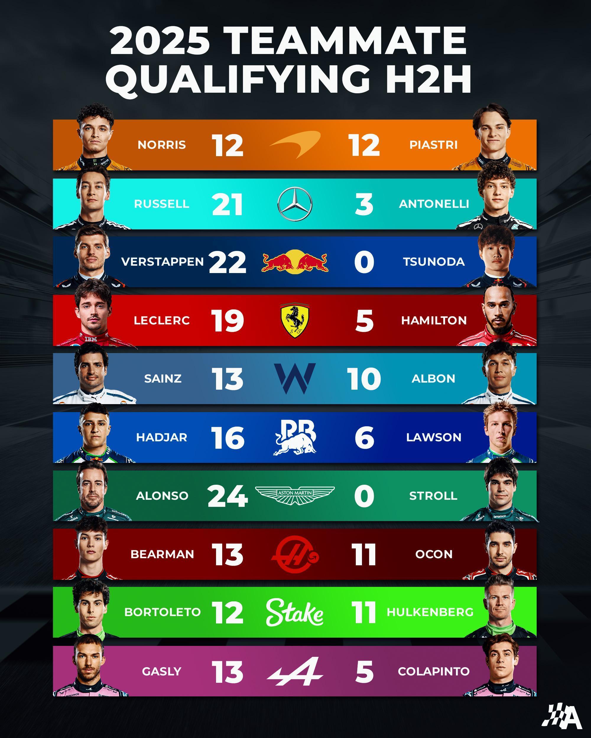 f1 2025赛季的排位赛“队内争霸”~👇2025f1阿布扎比大奖赛
