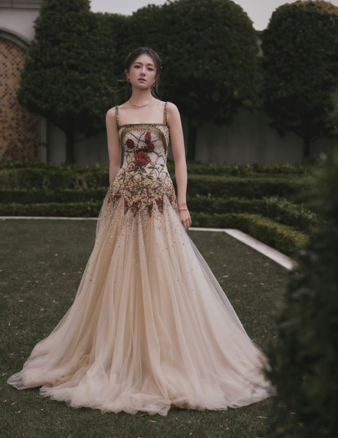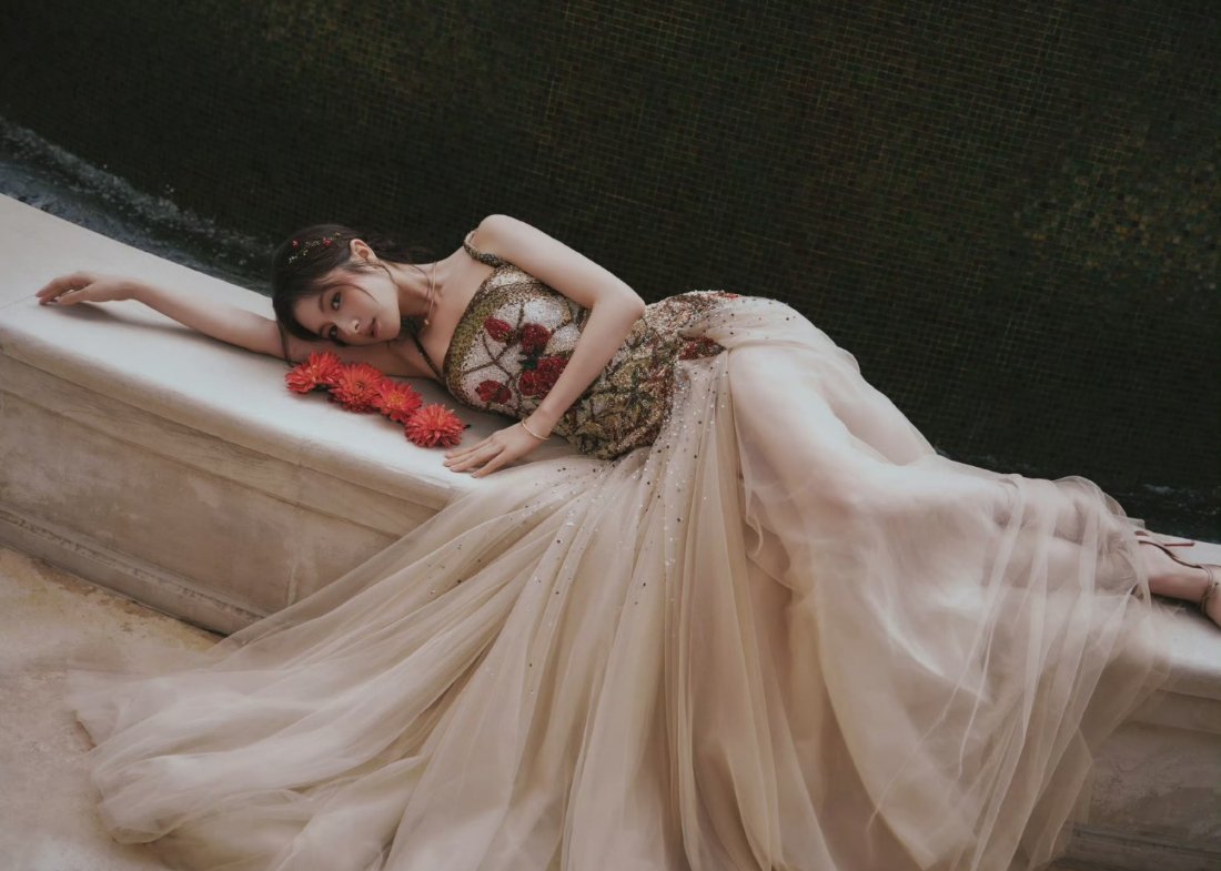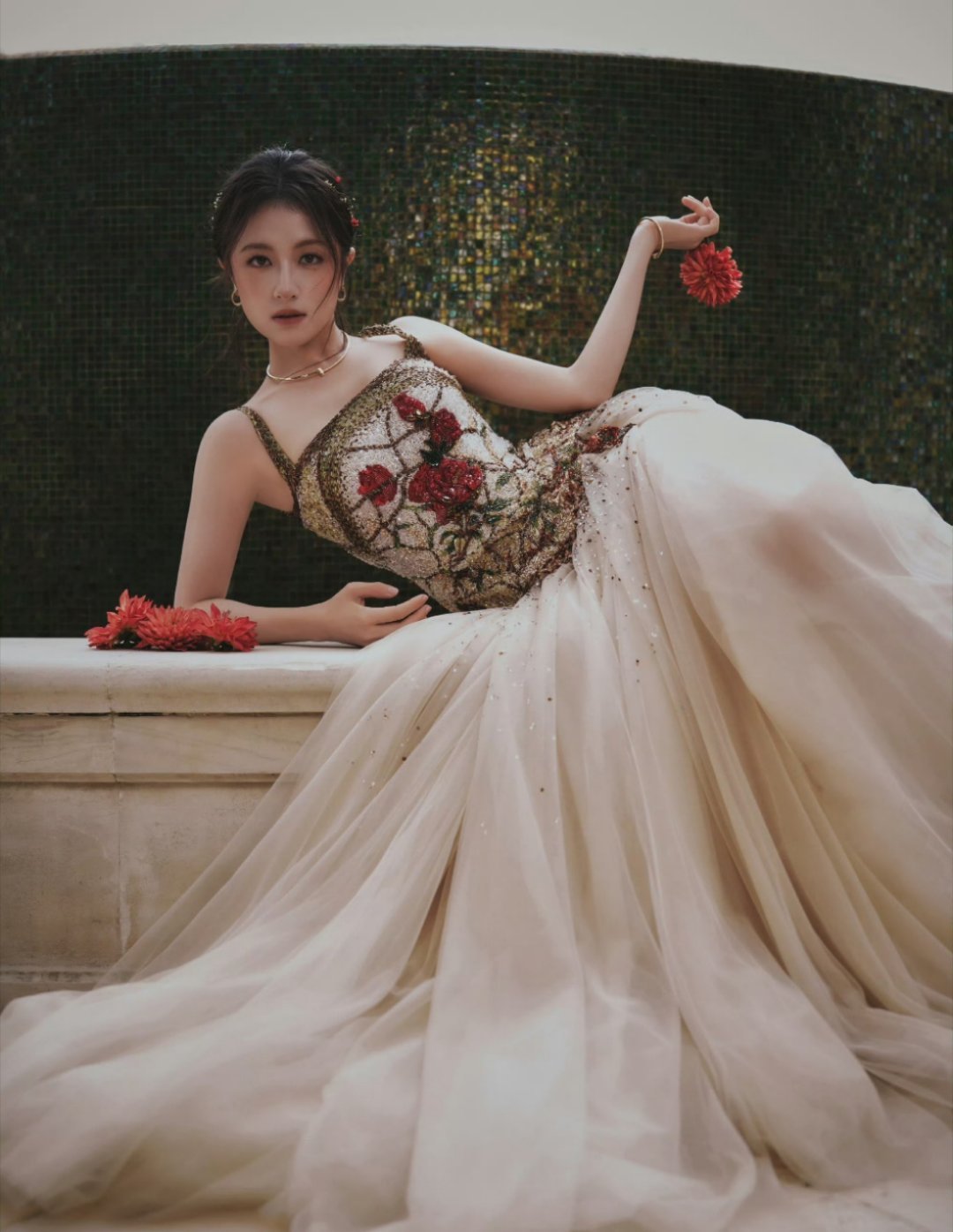 杨幂这身胸前设计挺别致,她穿什么都好看,