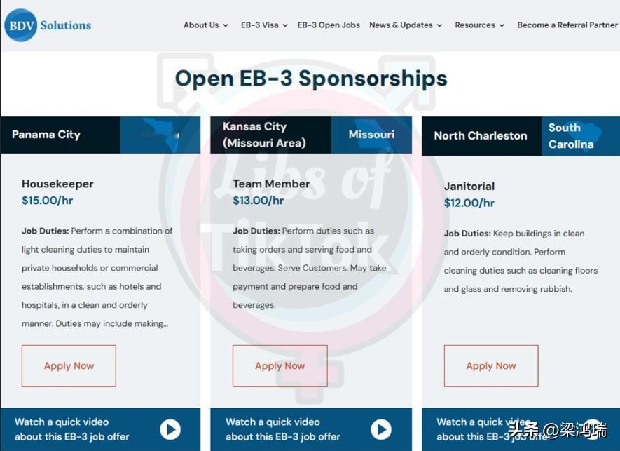Bdv Solutions是一家 EB-3 低技能签证担保机构,为外国人提供易于获得的美国工作签证,让他们可以来美国从事最低工资工作。 这些工作包括厨师、管家和清洁工等。 他们声称已成功担保超过 7000 名外国人移民,成功率高达 99%。 Bdv Solutions 于 2011 年由 Britt Vergnolle 和她的丈夫 Ronald 创立。公司的注册办公地址位于美国南卡罗来纳州格林维尔市: 631 S Main St 4th Floor, Greenville, SC 29601。 Bdv Solutions 最初是在创始人的家庭厨房餐桌上起步的,现已发展成为美国最大的专注于 EB-3 非技术签证项目的独立第三方服务提供商。