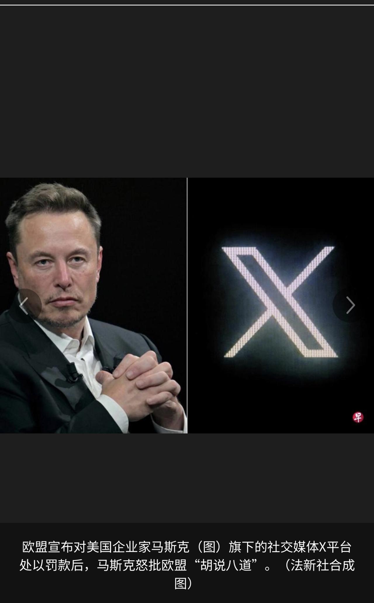欧盟指美国企业家马斯克旗下的社交媒体X平台违反数码服务法,对X平台罚款1.2亿欧元,结果引发华盛顿的强烈不满。 美国副总统万斯在欧盟公布罚款前就已警告欧盟,不要“以垃圾理由来攻击美国企业”。 美国国务卿鲁比奥也发文抨击欧盟委员会的罚款“不仅是对X的攻击,也是外国政府对所有美国科技平台与美国人民的攻击”。 据悉,X的竞争对手TikTok则暂时逃过罚款。欧盟委员会表示,接受TikTok为确保其平台上的广告保持绝对透明所作的承诺。
