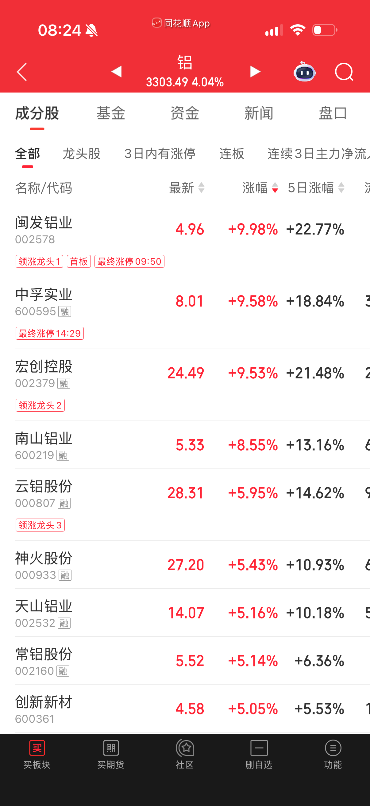 感觉铝比铜还强,涨幅居前的几个都挺强啊?