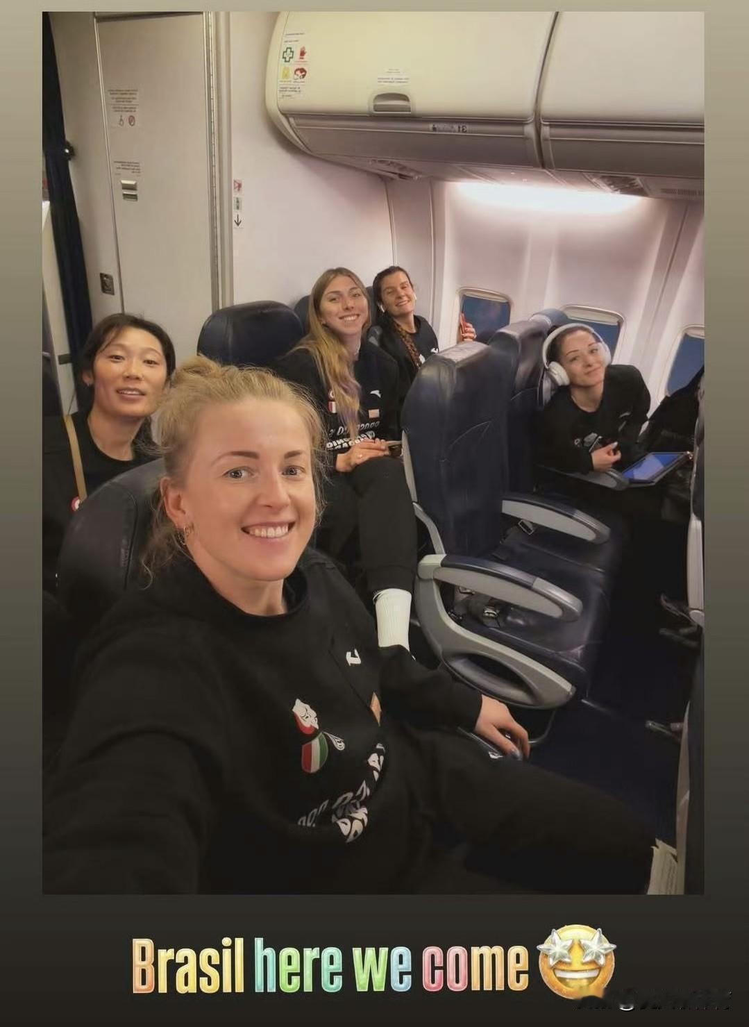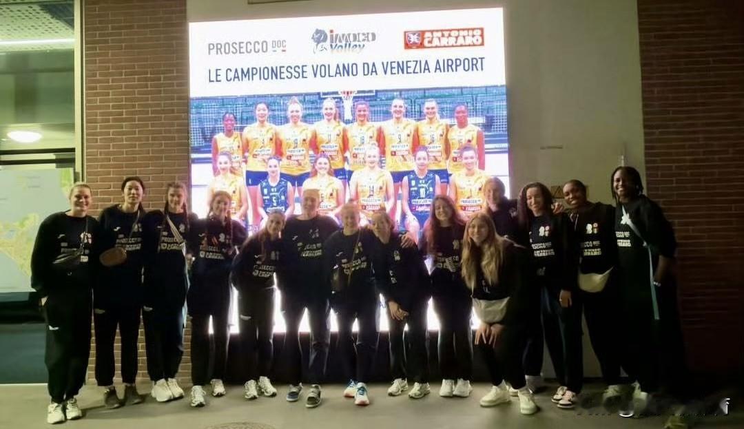 朱婷再次出发🛫参加巴西女排世俱杯!今天凌晨,朱婷所在的科内利亚诺俱乐部从威尼斯机场,准备飞往✈️巴西圣保罗,科内利亚诺俱乐部队员在机场拍的大合照,这次去的是加比的主场了,你看加比墨镜都戴上了,打扮得酷酷的,毕竟回到自己的主场!