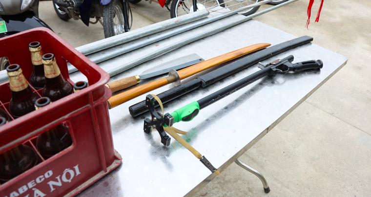 越南宁平警方夜间传唤70名携带武器“解决冲突”的青少年 在侦办过程中,华闾区警方已配合刑警部门传唤调查70名扰乱公共秩序行为的涉案人员。值得注意的是,作案者的年龄仅在14-20岁之间;其中56名居住在颜庆和金善县(原),14名受试者居住在嘉岩县(原)。 骑乘摩托车或摩托车时,不戴头盔,没有车辆牌照或遮挡车牌,携带猪发射器、三叉戟、猫刀、弹弓等多种危险武器 这群青少年组织高速行驶,大声喊叫,点燃照明弹,并向马路上扔啤酒瓶。 在化解矛盾、滋事过程中,参与者用杀猪刀和啤酒瓶打伤了另外5名年轻男子,不得不前往急诊室。