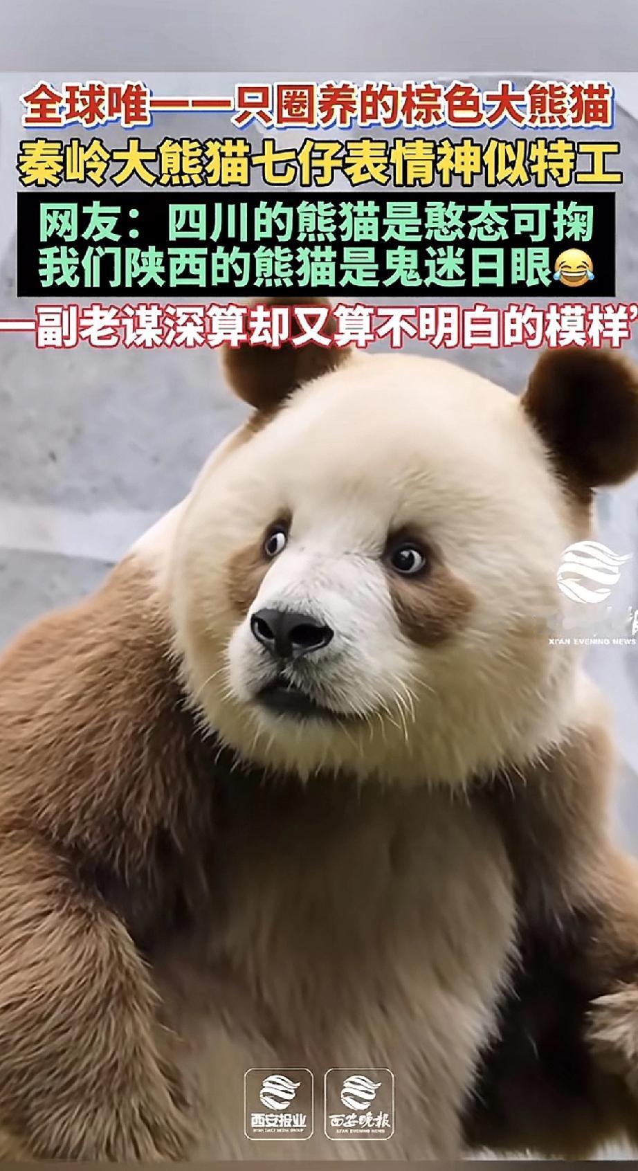 全球唯一一只圈养的棕色大熊猫“七仔”,最近因为表情太有戏火了。它总是一脸“老谋深算”的样子,可眼神又透着点“算不明白”的迷茫。 网友都笑坏了:四川的熊猫憨态可掬,陕西的熊猫怎么“鬼迷日眼”的?一副小心翼翼、心事重重的特工模样。 难道熊猫界也开始内卷了?连国宝都得琢磨点“心事”了。不过说归说,这样“鸡贼”又可爱的七仔,反而让大家更喜欢了。真是熊生不易,且萌且珍惜啊!