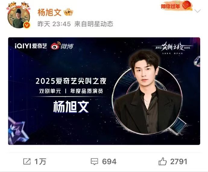 杨旭文领奖国外领完国内领 喜欢卢凌风的自豪感谁懂!杨旭文AACA拿最佳剧集带文化走向世界,尖叫之夜又获年度品质演员,太赞啦!
