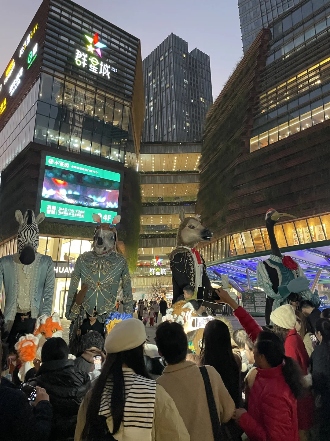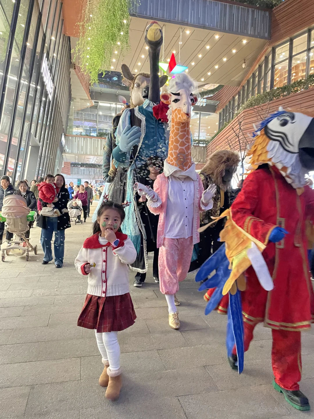 1F中庭区域热闹非凡,现场不仅有千份🎂蛋糕免费领!还有动物巡游、乐队表演,狂欢派对🎉表演一场接一场……现场人多好热闹、让我感受到了武汉人的热情!