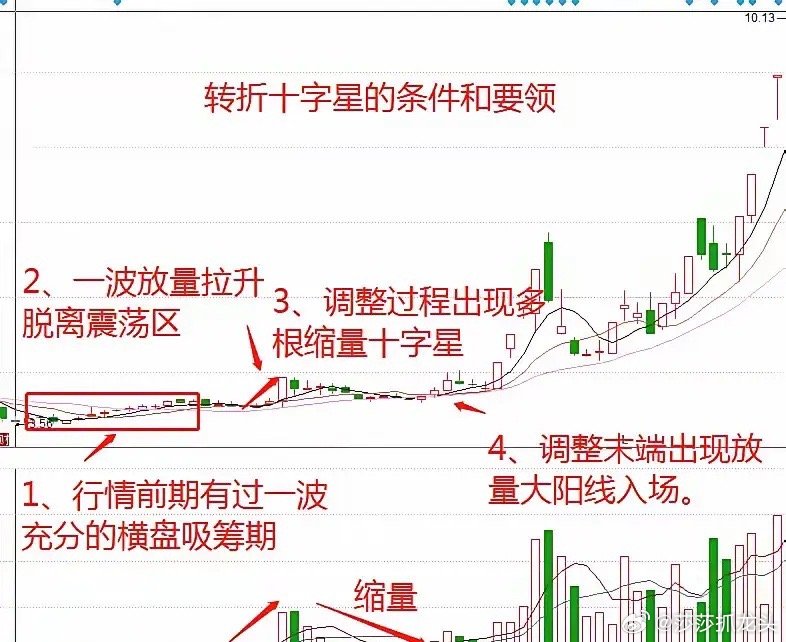 在实战中,我格外留意一种形态,即股价强势涨停后的次日,收出一颗犹豫的十字星。只要后续出现关键确认动作,我往往会果断跟进,把握新一轮的加速机会。如果你也想精准捕捉主升浪的启动点,避开主力设置的“多头陷阱”,那么今天对“涨停后挂十字星”的深度剖析,将为你打开一扇新的交易窗口。个股在走出涨停后,出现高位十字星,这并非简单的上涨中继或见顶信号可以一概而论。强势行情若要延续,主力必须在启动初期进行一次高效的筹码清洗。由于涨停吸引了大量市场目光和跟风盘,主力为了减轻后续拉升压力,常会采用盘中剧烈震荡的方式制造恐慌,这颗十字星正是多空双方在高压下短暂平衡的产物,一旦平衡被打破,方向选择往往极具爆发力。“涨停后挂星”战法的核心条件与操作细节如下:1. 涨停需具突破性与号召力。 前期的这根涨停K线至关重要,它最好是放量突破关键平台或重要均线压力的标志性阳线。这种涨停具有明确的启动信号和号召力,表明主力有强烈的做多意图,而非单纯的短线行为。突破的级别越大,后期潜力通常也越大。2. 十字星需缩量且振幅可控。 在涨停次日,股价高开后陷入震荡,最终收出标准的十字星(包括小阴小阳十字)。关键在于,当日的成交量必须显著低于涨停日的量能,呈现“价震量缩”的态势。这表示在震荡中,恐慌抛盘有限,大部分筹码已被锁定,浮动筹码得到有效清理。振幅最好控制在涨停板实体的上半部分,显得强势。3. 关键确认信号:次日的定向K线。 这颗十字星本身是“待变”信号,并非买入指令。真正的决策点在于接下来一个交易日。我们需要观察一颗能够指明方向的K线出现:要么是一根高开高走、收盘站稳在十字星最高点之上的阳线(强势确认),要么是一根低开低走、有效跌破十字星最低点及涨停阳线关键支撑的阴线(弱势确认)。我们只参与向上确认的情况。4. 入场与风控的精确点位。 当向上确认的阳线出现,且盘中价格稳健运行于十字星高点之上时,可视为进场时机。初始止损位应设置在十字星的最低点或涨停阳线的开盘价附近(视哪个更高),以应对可能出现的假突破。此举旨在用较小代价,博取趋势延续的较大空间。“涨停后挂星”形态的精髓在于识别主力在强势启动后的首次洗盘动作,并通过量价关系与确认信号来过滤风险。兄弟们点赞评论就是最莎莎最大的支持