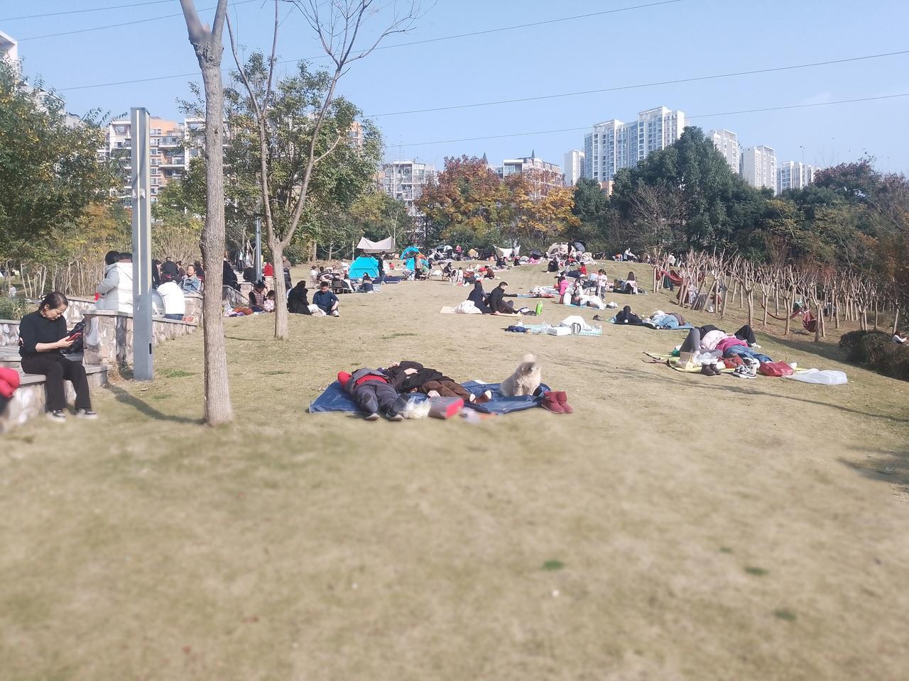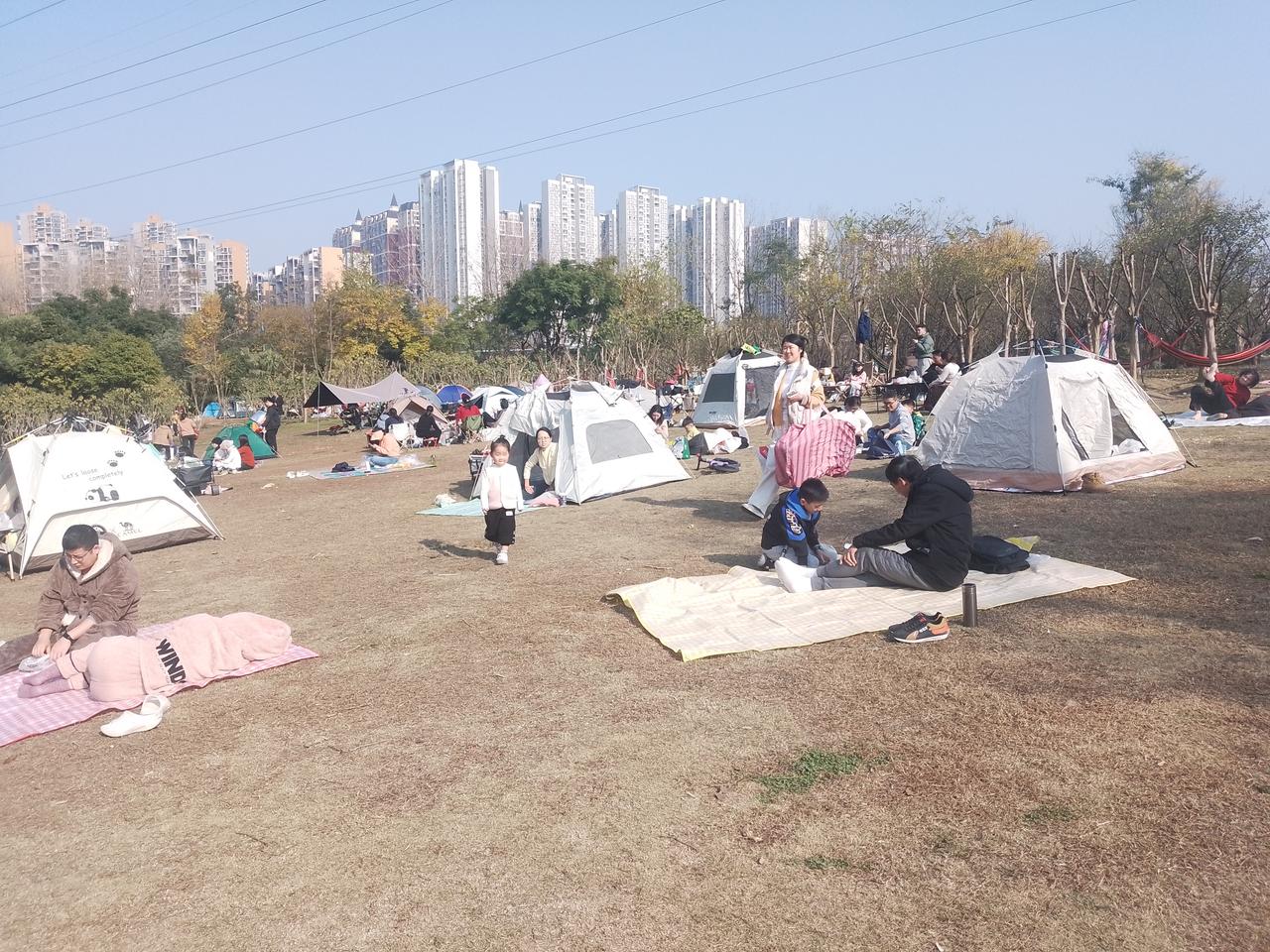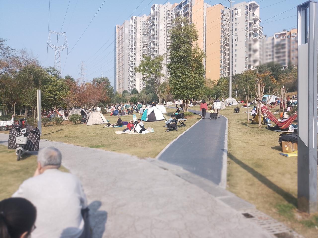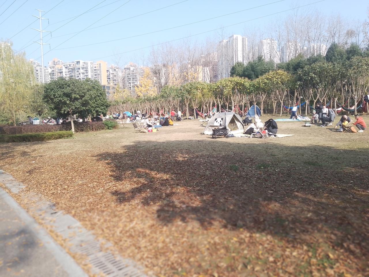 今天的太阳足够晒得让所有成都市民开心! 通过下图可见成都市民对艳阳天的热衷程度! 首先赞叹的是今天太阳的光照,其温暖程度是入秋一来从未见过的透明天气! 当我一路步行漫过绿化步道时那,种说不出的温暖喜悦,舒适程度是无法形容的惬意, 可以说;晒得人前胸后背都在发烧,额头上冒汗,既有想脱掉外套衣着单衫的想法! 这不是夸张,是实实在在存在的现象! 按四川方言来说,太阳晒得巴适得很! 今天恰逢周末天,正好天气格外清澈无云, 四川师大旁边的草坪上,那可以说全民齐上阵,一眼望不到边际的都是人,三人一组,无人一堆几乎布满了大大小小的帐篷如同天上的繁星一般,,无不惬意地感受着大自然带来的乐趣。 有打扑克的,有唱歌跳舞的,有玩手机喝茶的,还有买儿童玩具的,看书聊天的, 儿童更是在草滩上活蹦乱跳,尽情欢呼着,总之户外活动花样繁多! 大家都在同一时间,不约而同的来到这里!这可是成都在冬天难得的绝佳气候环境! 有一天享受一天,今后是否还能碰到这样的好天气,那就不好说了!瞧着这热闹非凡的场景,我也被这欢快的氛围所感染。顺着草坪往前走,能听到人们爽朗的笑声和孩童清脆的呼喊声交织在一起,仿佛奏响了一曲冬日暖阳下的欢乐乐章。 在草坪的一角,几位老人正围坐在一起,一边晒着太阳,一边慢悠悠地聊着家常,脸上洋溢着岁月沉淀后的从容与满足。他们的身旁,放着几个保温杯,散发着淡淡的茶香。 再看那片花丛边,一群年轻人正拿着相机,摆着各种造型拍照留念。他们的笑容比阳光还要灿烂,用镜头记录下这美好的瞬间,仿佛要将这份温暖与快乐永远定格。 远处,还有人在放风筝。五彩斑斓的风筝在湛蓝的天空中翩翩起舞,与地上的人群相映成趣。孩子们仰着头,追逐着风筝奔跑,笑声在空气中飘荡。 这难得的艳阳天,让每一个身处其中的人都放下了平日里的忙碌与疲惫,尽情享受着大自然的馈赠。真希望这样的好天气能多停留几日,让更多的人能在这温暖的阳光下,感受生活的美好与惬意。