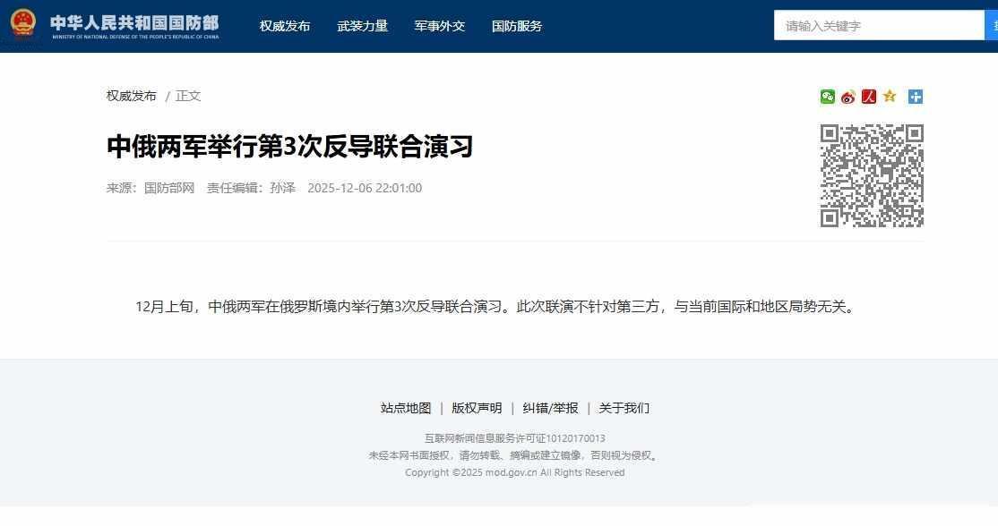 中俄高层对表后,毫不拖延进行联合行动,日本沉默;美国感到紧张 现在是2025年12月7号,再过几天中俄两军就要在俄罗斯那边举行联合反导演习,这种事情本来不新鲜,但在今年这个时间点就显得不太一样,大家都留意着情况,谁也没出声,偏偏最该着急的日本却一点反应都没有。 日本最近连外交声明都没有发表,按理说邻居进行军事活动,特别是中俄联合行动时,它应当有所反应,但它没有发声,这不是不想表态,而是不敢轻举妄动,日本清楚自己与美国关系紧密,如果贸然出来说话,美国未必能及时支持,自己反而可能被孤立,我觉得它在等待风向,先看美国如何行动,再跟着走。 美国那边表面上保持平静,私下里早就开始计算各种账目,五角大楼的工作人员最近开会的次数多得不太正常,他们不是担心中俄的导弹会打到美国本土,而是担心这种军事演习变成经常性活动,以后亚太地区的局面就会被中俄主导,他们在算政治方面的账、经济方面的账、安全方面的账,每一笔都和中俄合作这件事分不开。 演习地点定在俄罗斯那边,这里面有说法,不在中国办,也不放在边境,专门选在俄方地盘上,这说明中俄两国打算把这次行动圈在“区域协作”这个框子里,不刺激别人,也不退让,这种拿捏的分寸其实比大张旗鼓更让人难受,你找不出毛病,又总觉得不太对劲,这就叫软刀子。 在中国这边,我们没有多做解释,也没有喊口号,只是按照计划推进工作,该通知的事项继续通知,该协调的事务继续协调,很多人觉得我们过于低调,其实是因为没有必要争吵,你越是吵闹,别人越认为你心虚,你越是保持安静,别人越难摸清你的底牌,这不是在假装什么,而是基于经验的判断。 美国当前面临一个两难选择,既担心对中俄表态过于强硬会促使两国加强合作,又担心态度过于温和会引发国内鹰派的批评,因此他们采取拖延策略,等待军事演习结束后再根据情况调整立场,实际上是在寻找一个合理借口,将责任归咎于中俄单方面升级局势,以便联合盟友共同施压。 日本方面依然保持沉默,美国那边还在计算得失,中国和俄罗斯照旧按计划推进。表面上风平浪静,水面下却暗流汹涌。各方都不愿率先行动,但都心知肚明,这场演习过后,某些事情已经悄然改变——不是导弹飞得多高的问题,而是彼此间的态度在不知不觉中发生了转变。