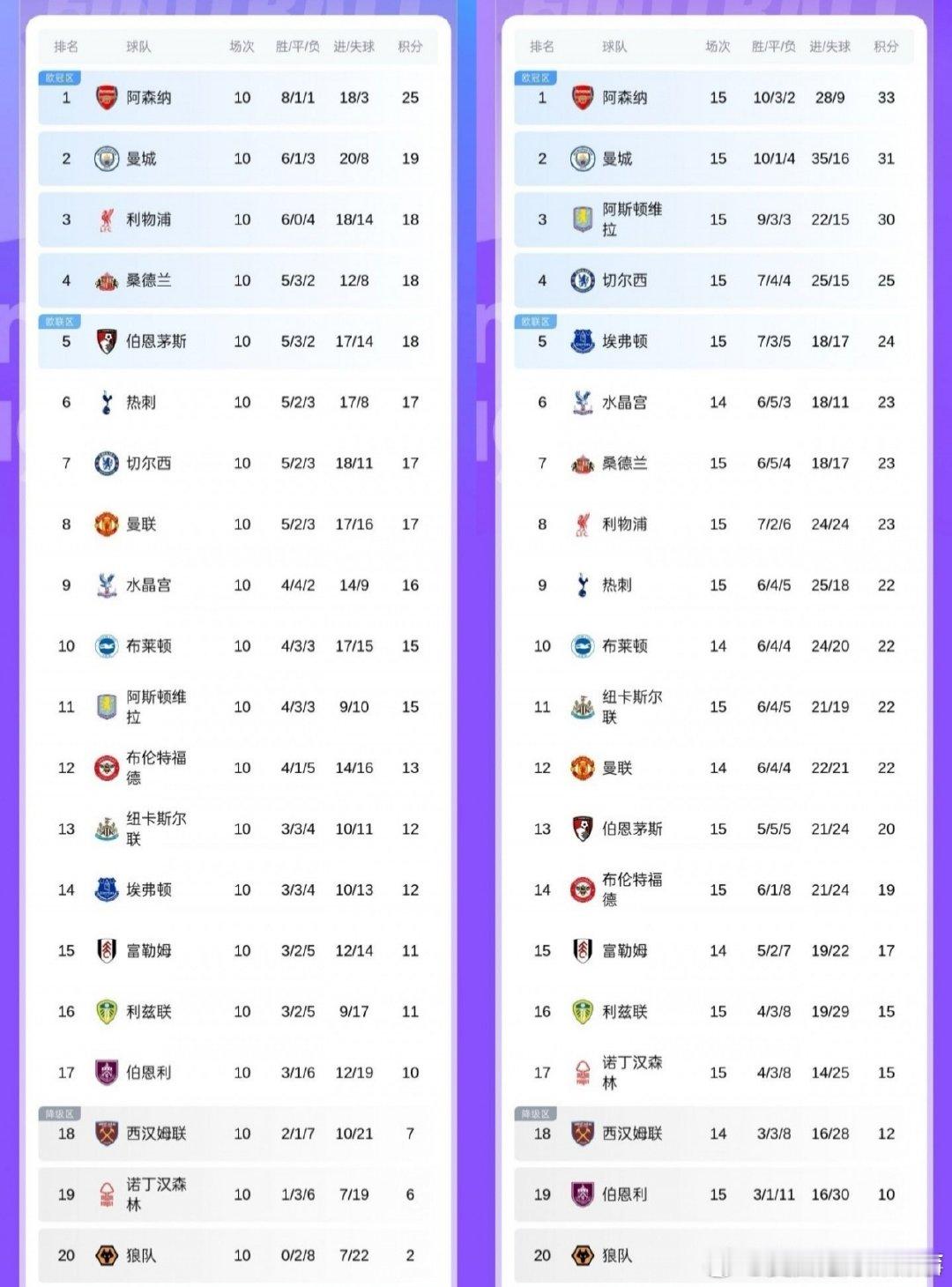 5轮丢了7分.....👀阿森纳第10轮时6分领跑,现15轮后曼城追至只差2分🤯▪️阿森纳近5轮:2-2桑德兰、4-1热刺、1-1切尔西、2-0布伦特福德、1-2维拉▪️曼城近5轮:3-0利物浦、1-2纽卡、3-2利兹联、5-4富勒姆、3-0桑德兰 cr:英国足球那点事