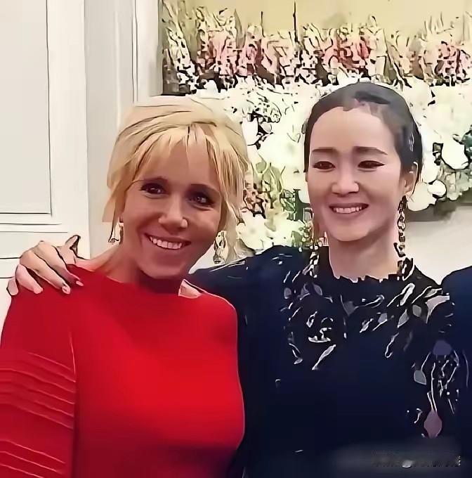 巩俐和马克龙的夫人合影留念,感觉她们二人很熟,关系好像也不错,看来巩俐在法国也是有一定影响力的,跟马克龙夫人的关系处到这种程度,说明跟马克龙也是非常熟悉的,一个女演员,能够和这些政要认识,真是不简单!