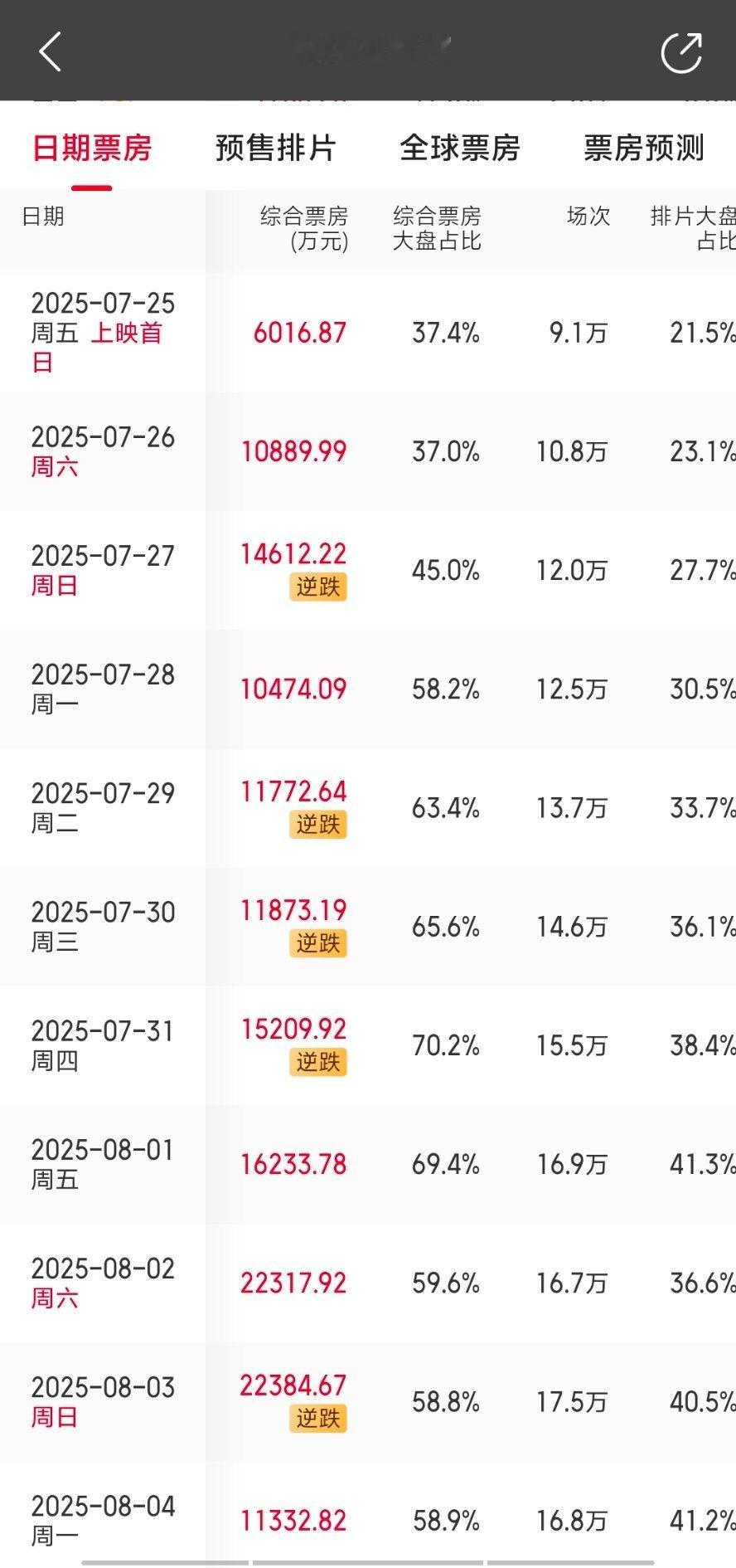 真正的好评如潮,不是粉丝来决定的,而是路人来决定的。看看南京照相馆,真正口碑过硬的影片是敢于点映的,而且点映六天。上映首日预售只有935万,上映当天只有8万多的场次,当天票房6016万,当天新增5081万,基本都是路人进场。次日排片上涨2个点,预售也只有1345万,当日新增票房飙升至9544万。这都是路人贡献的。自此开始了一路逆跌,累计逆跌12次。根本不存在所谓“好评如潮”但排片倒挂当日新增票房少的可怜的作品,这种是标准的粉丝电影。