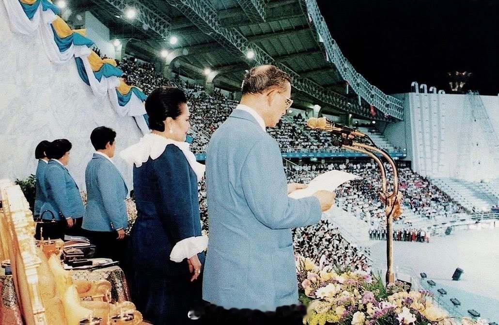 王室王室泰国王室暹罗往事 老照片:1998年12月6日,暹罗王室出席东南亚运动会开幕式。感觉颂妃出席有点迷:这时候已经离婚了,不应该是朱拉蓬出场么狗哥颂妃带着帕公主镇宅出来,不知情的以为这才是一家四口