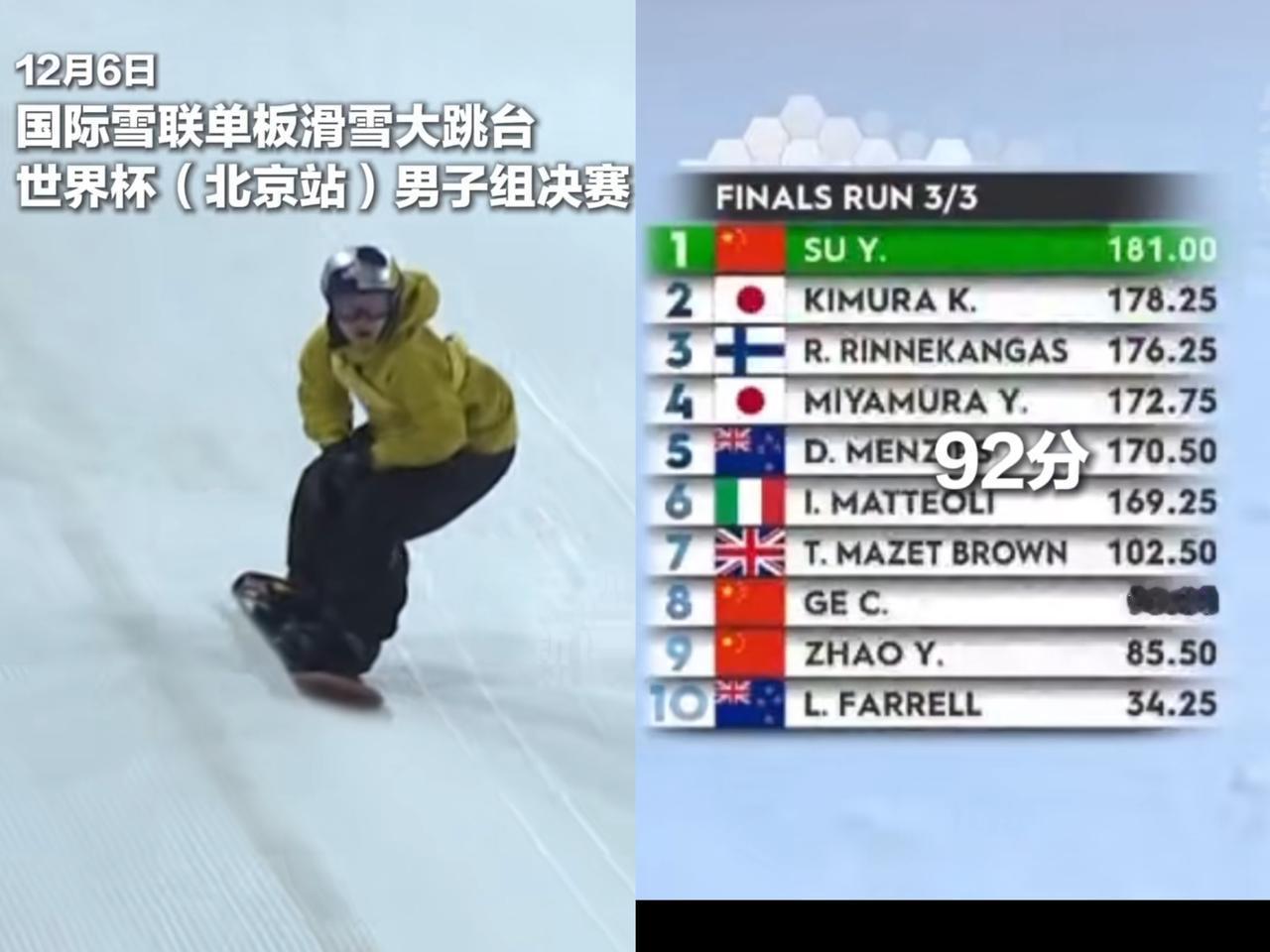 苏翊鸣反超日本选手! 昨天的男子滑雪大跳台决赛,苏翊鸣最后一跳发挥出色。 顶住压