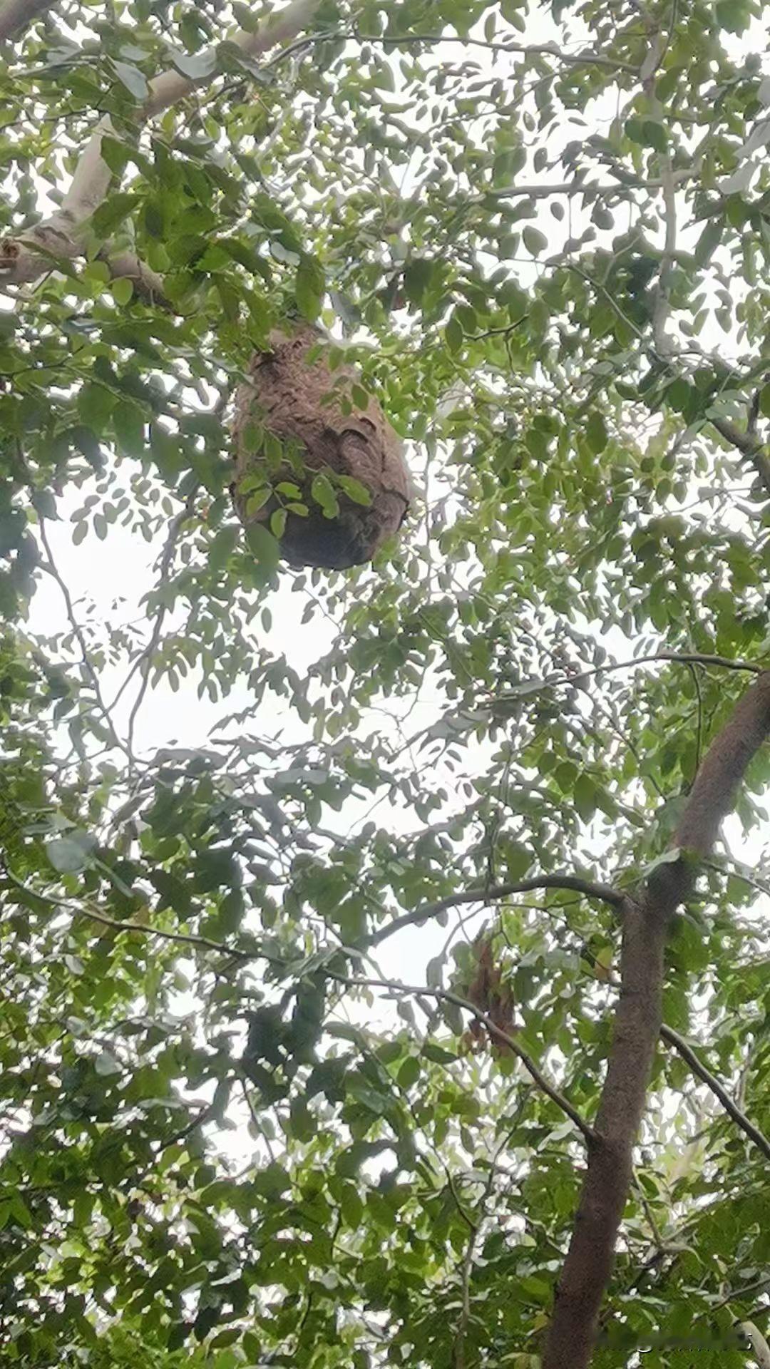 冬日生活打卡季枝叶间坠着个棕褐色的马蜂窝,像裹了层粗糙的“土壳”,藏在绿叶子里不仔细看还真难发现。这蜂巢圆滚滚的,攀在细枝上,周围叶片晃悠着,莫名有点“低调藏在树里的小堡垒”那味儿——就是看着得离远点,可不敢招惹这小家伙们的家~