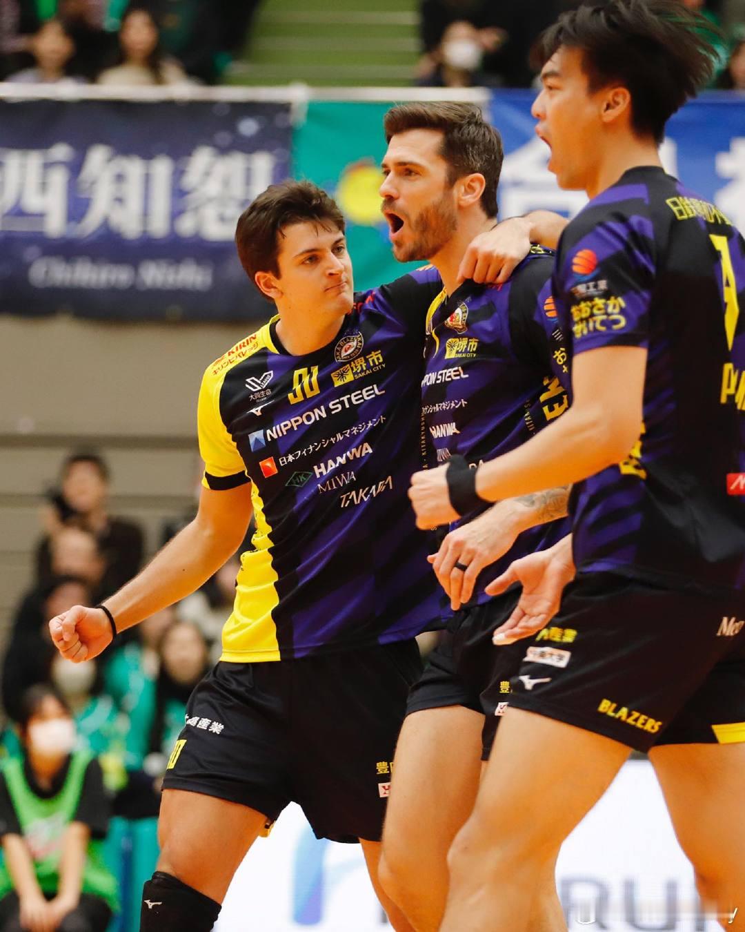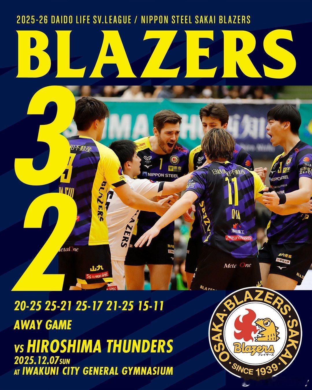 终于赢球了,好难!日超男排第七周,大阪日铁堺苦战五局3-2击败JT雷霆,赢赛季第三胜。五局比分20-25 25-21 25-17 21-25 15-11。JT雷霆遭遇赛季第八场失利。扣球61-61,拦网9-1=,发球5-2,失误26-31。里纳尔迪20分(35扣18中1失误,1拦1发),安井恒介15分(26扣13中1失,2拦),安德森14分(29扣12中4失,1拦1发),蔡沛彰14分(15扣12中2拦),渡边晃瑠9分;罗宾逊16分(35扣18中4失,1拦1发),罗克14分(26扣12中1拦1发),三輪 大将12分(10扣8中4拦),新井雄大11分(19扣10中4失,1拦)。日本男排超级联赛 马修安德森