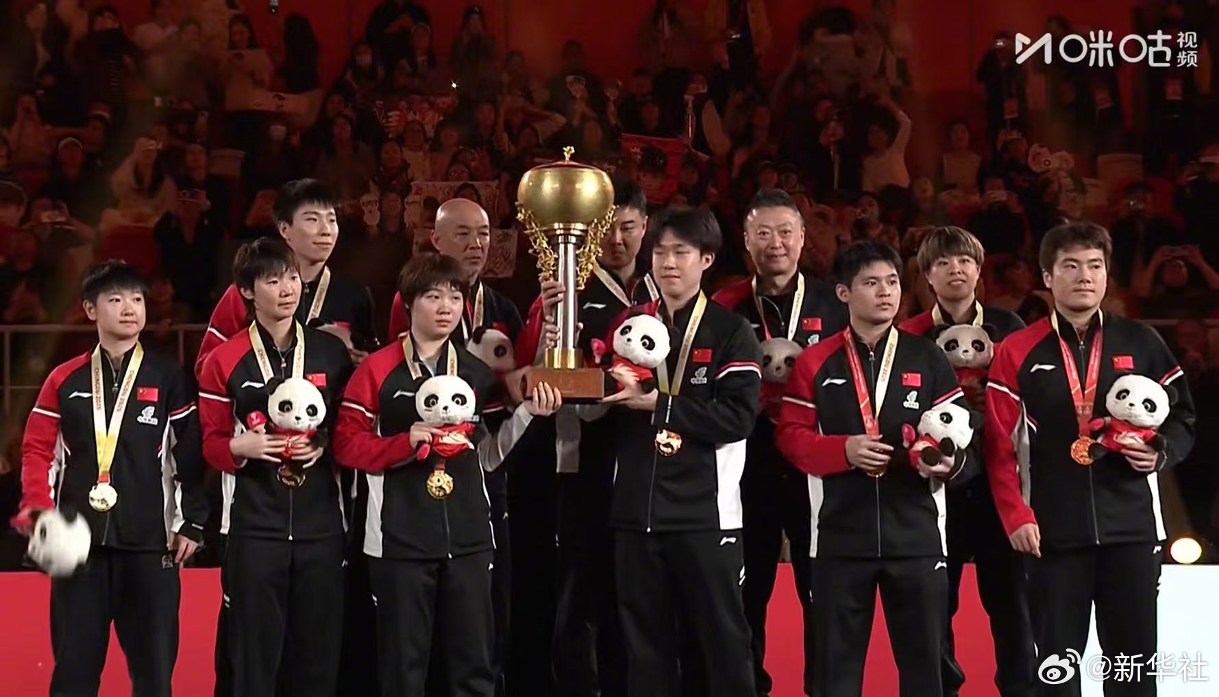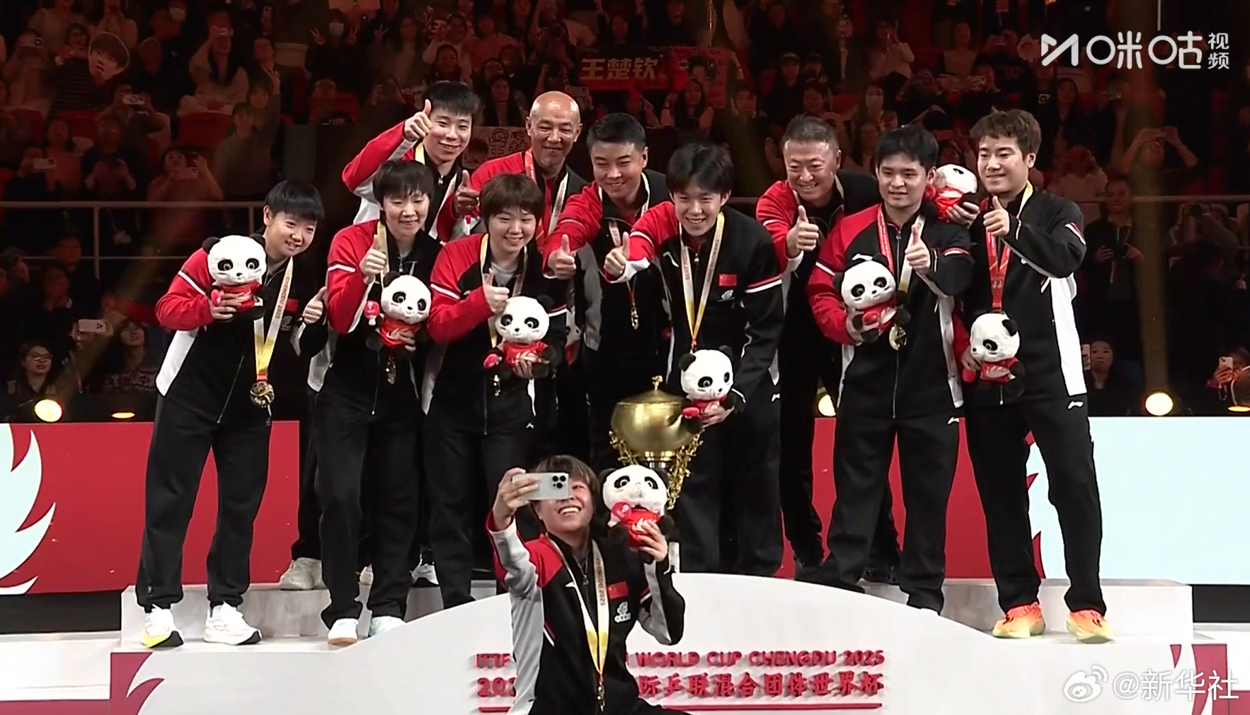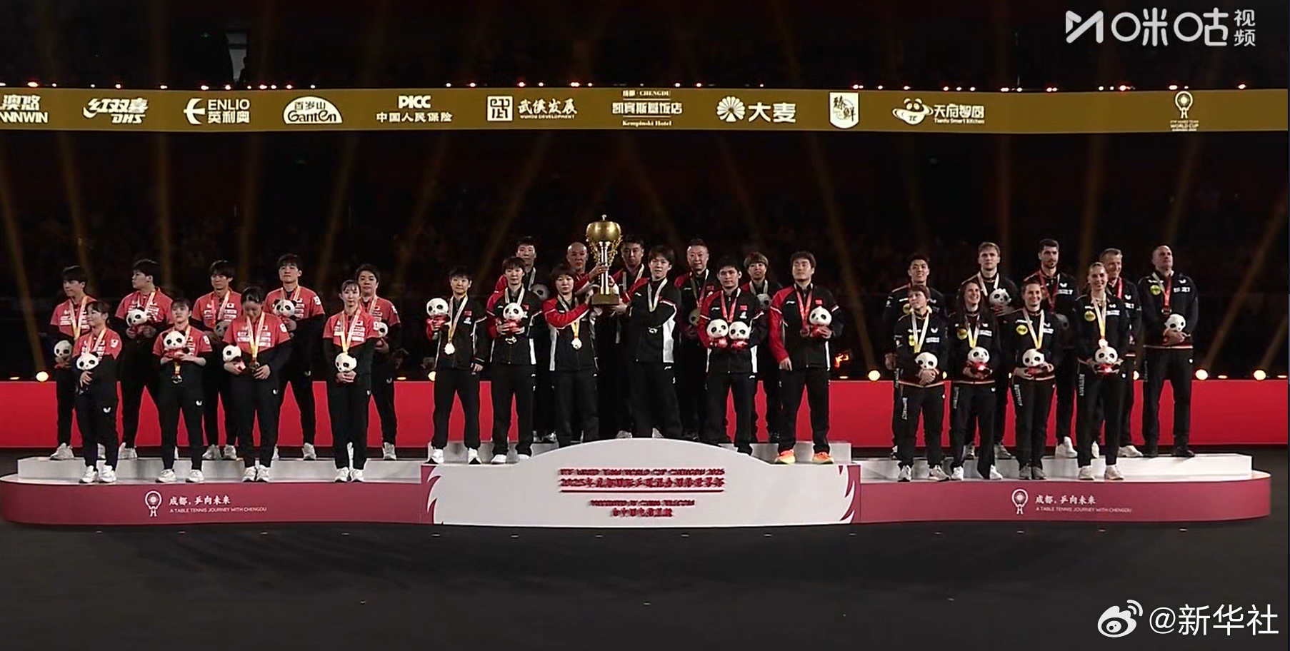 【激动!#国乒冠军捧杯时刻#】今晚,2025国际乒联混合团体世界杯,中国队战胜劲敌日本队蝉联冠军。戳↓一起见证捧杯时刻!#国乒vs日本#(记者:陈地 王曦 胥冰洁) 蒯曼