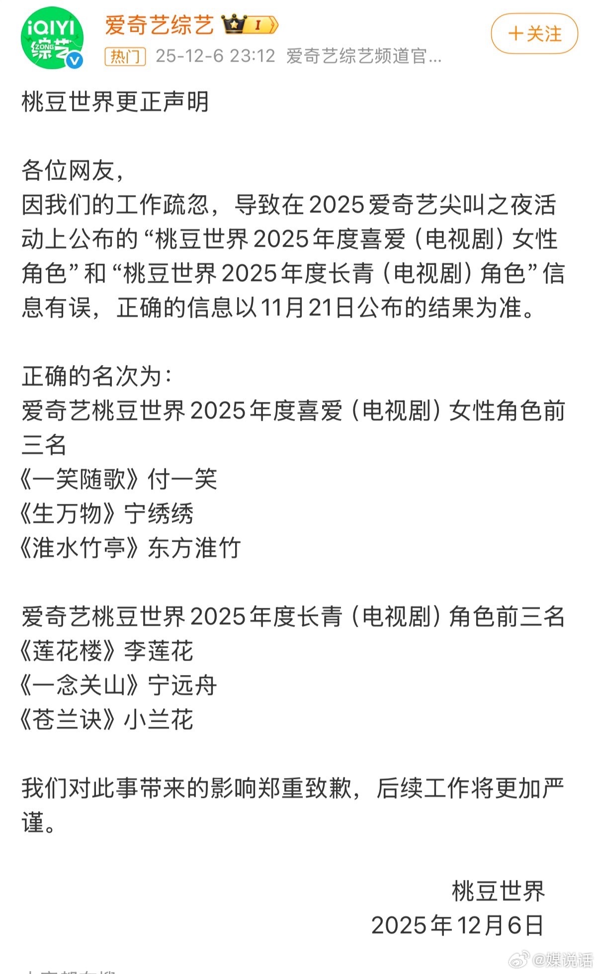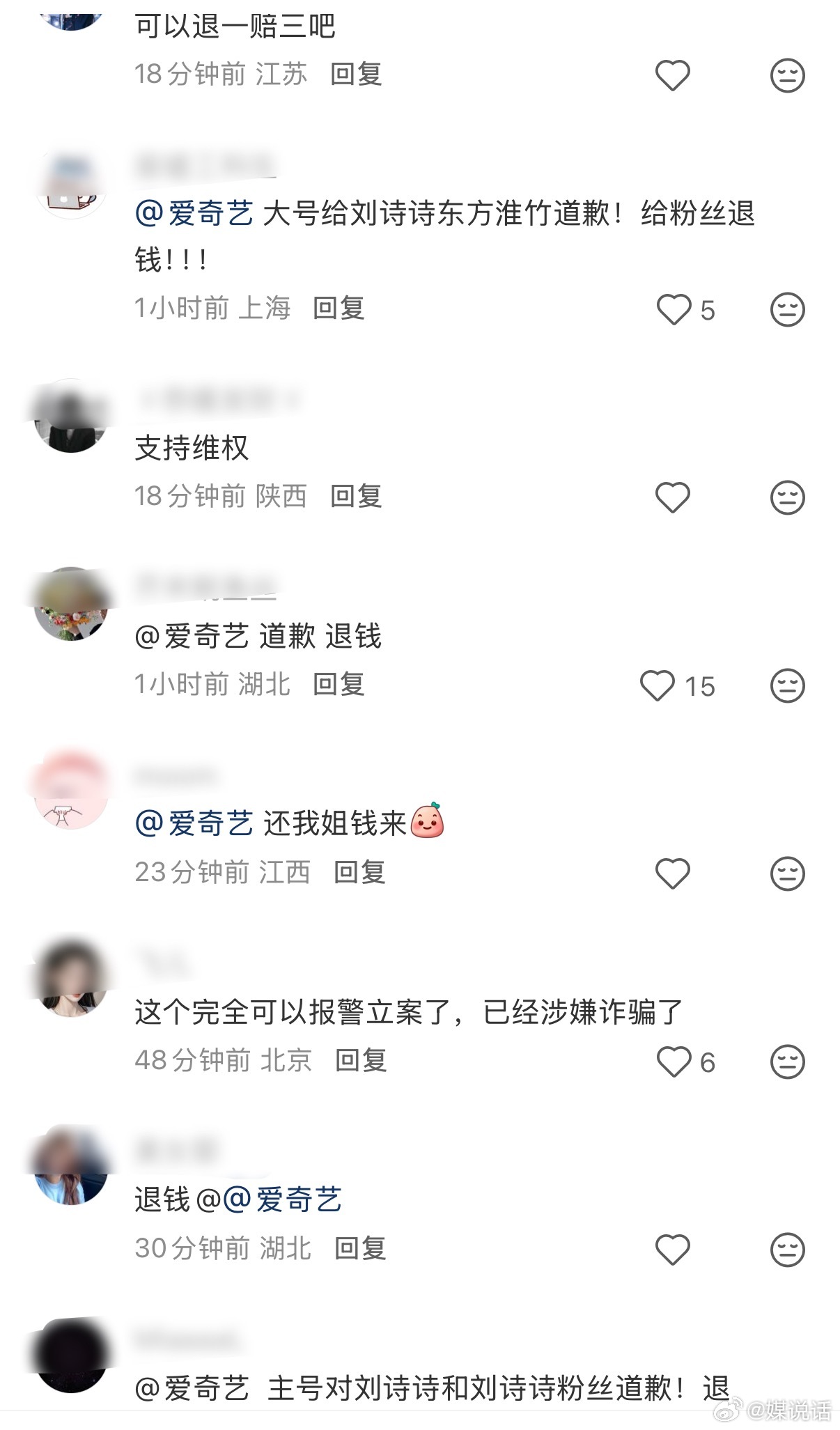 刘诗诗大粉在维权爱奇艺,起因是尖叫之夜把刘诗诗的奖错颁给了白鹿,但是只道歉没给补偿……