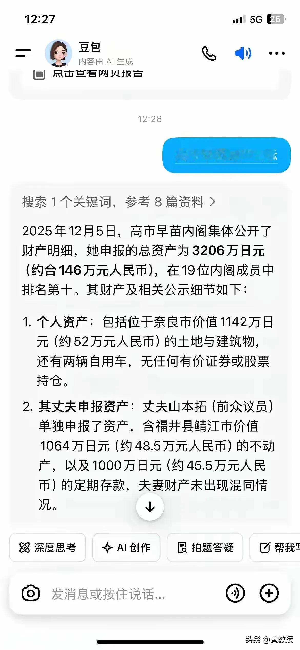 近日,在中日关系上兴风作浪的高市早苗公布了自己的资产。