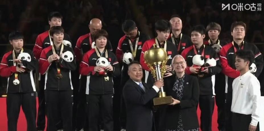 混团赛冠军大合照来了,刘国梁如约而至出现在颁奖嘉宾行列当中,大合照仍然占在C位。 但中国队的运动员和教练员占位却让人有些看不明白了。 冠军合照站在C位的怎么不是莎莎和王楚钦?或是王曼昱和莎莎?蒯曼怎么占C位去了?论成绩论资历她也应该是在莎莎和曼昱后面那一位吧? 而今年后排少了总教练位置,但捧杯不应该是王皓和马琳比较合适吗?大家都知道,今年混团赛最大功劳是女队员啊,马琳怎么就靠边站了?不应该论功行赏吗?