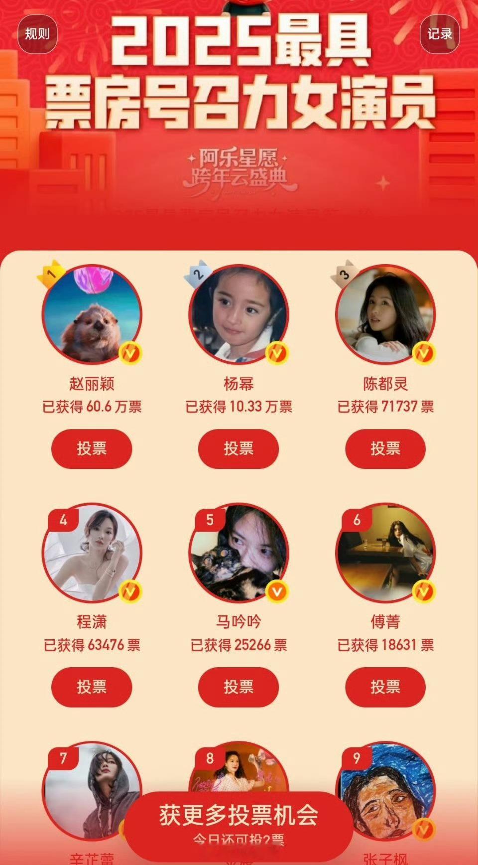 2025最具票房号召力女演员投票赵丽颖60万+票,丽粉好厉害,遥遥领先式断层top1
