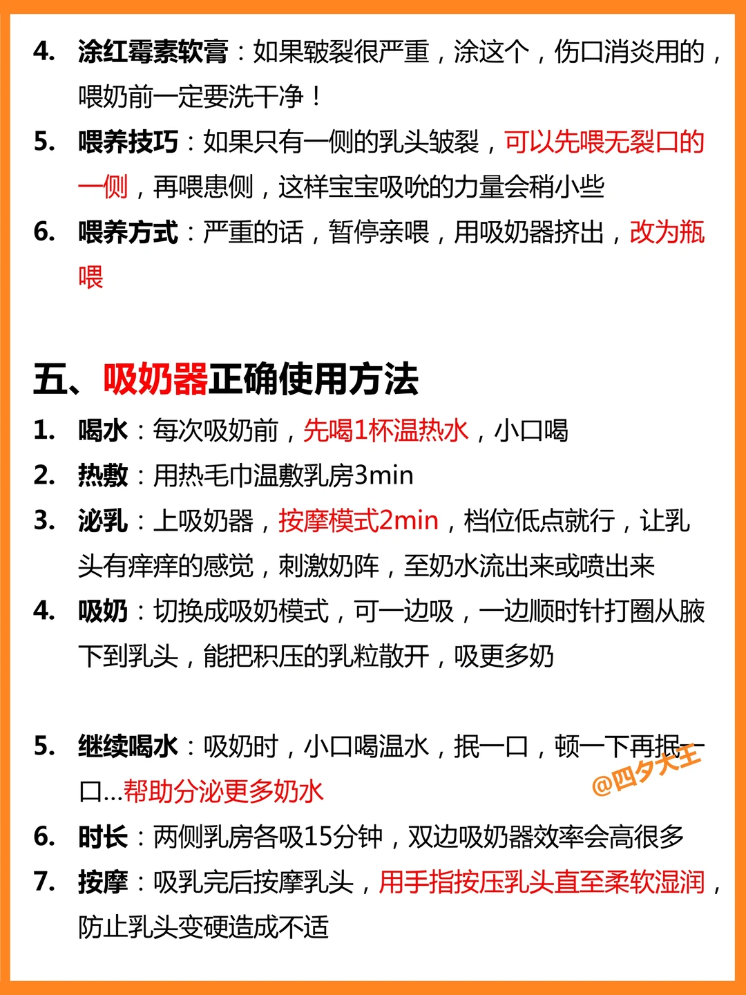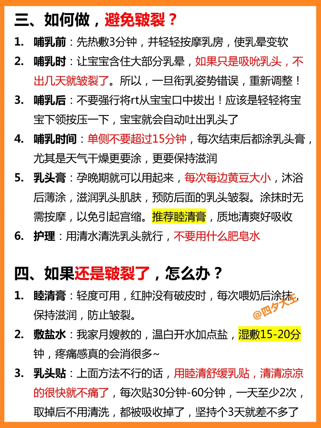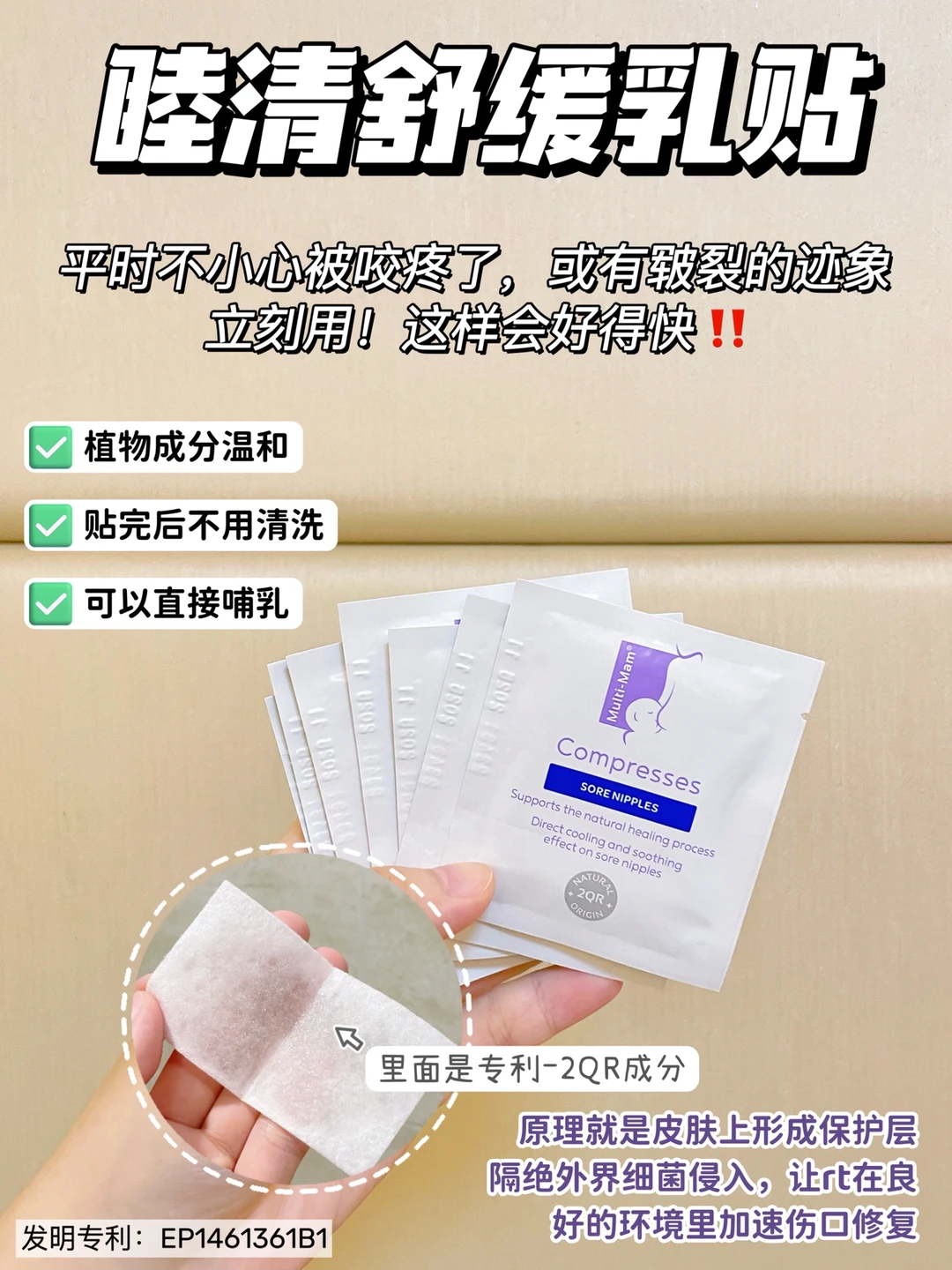 . 👉亲喂想要不受罪😆 👉这篇笔记,都请给我看完! . ⭕️本文重点: 1、这样开奶,不堵奶 2、正确的喂奶姿势,避免被咬破 3、如何避免皲裂? 4、皲裂了,怎么办? 5、吸奶器正确使用方法 6、堵奶了,怎么办? . ✔️母乳亲喂被疼哭的第80次 ✔️终于总结出的护理好物: . 1️⃣一次性纸杯:痛的时候,衣服料子都碰不得,这个真的是救命奶罩,纸杯固定在rf上,避免剐蹭衣服产生新的疼痛 2️⃣睦清舒缓乳贴:皲裂了用,它是一块布上面沾着凝胶的,贴在rt上就行,清清凉凉的很快就不痛了,布料还能阻隔衣物摩擦,简直是神助攻!不用清洗,植物成分来的,皮肤很快就能吸收掉。它里面是专利成分-2QR,主要原理是帮助皮肤表面形成保护层,隔绝外界细菌侵入,给皮肤自我修复创造一个良好环境,基本上坚持贴个3天就差不多啦! 3️⃣睦清膏:滋润保湿,预防干裂!孕晚期就可以开始涂了,每次一颗黄豆大小,直接买大管 不用犹豫,植物油脂来的,成分纯净,用起来很放心。 4️⃣吸奶器:太痛了改瓶喂的,必备 5️⃣哺乳枕:坐喂神器 6️⃣哺乳凳子:坐喂时,一边脚踩着可以借力轻松点 7️⃣大夹子:只要穿的不是开衫,喂奶时就一定会卷起衣服,这个夹子就能固定住卷起的衣服! . 发明专利:EP1461361B1 以上!希望这些产后心得能帮到你 . 我会持续更新孕育干货 关注我,新手妈妈带娃不迷路