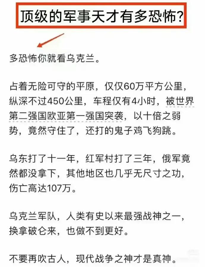 既然乌克兰这么能打,为什么俄乌战争打了快四年时间,乌克兰就从来没有占过半分便宜?打到现在,不要说丢盔弃甲,起码很多土地都被俄罗斯占了吧? 现在是信息如此发达,竟然还有这么多人睁着眼睛说瞎话,我在是让人觉得很可笑。他们这样干,不仅没有给乌克,乌克兰挣得半分钱的面子,反而让乌克兰在世界各国面前丢尽了脸。 乌克兰再怎么牛逼也不是俄罗斯的菜,说老实话,虽然两国已经互相开战了几年时间,但俄罗斯总是还念着乌克兰的旧情,并没有下死手。如果与俄罗斯作战的是另外一个国家,比如说其他欧洲国家,很可能就是另外一回事了。