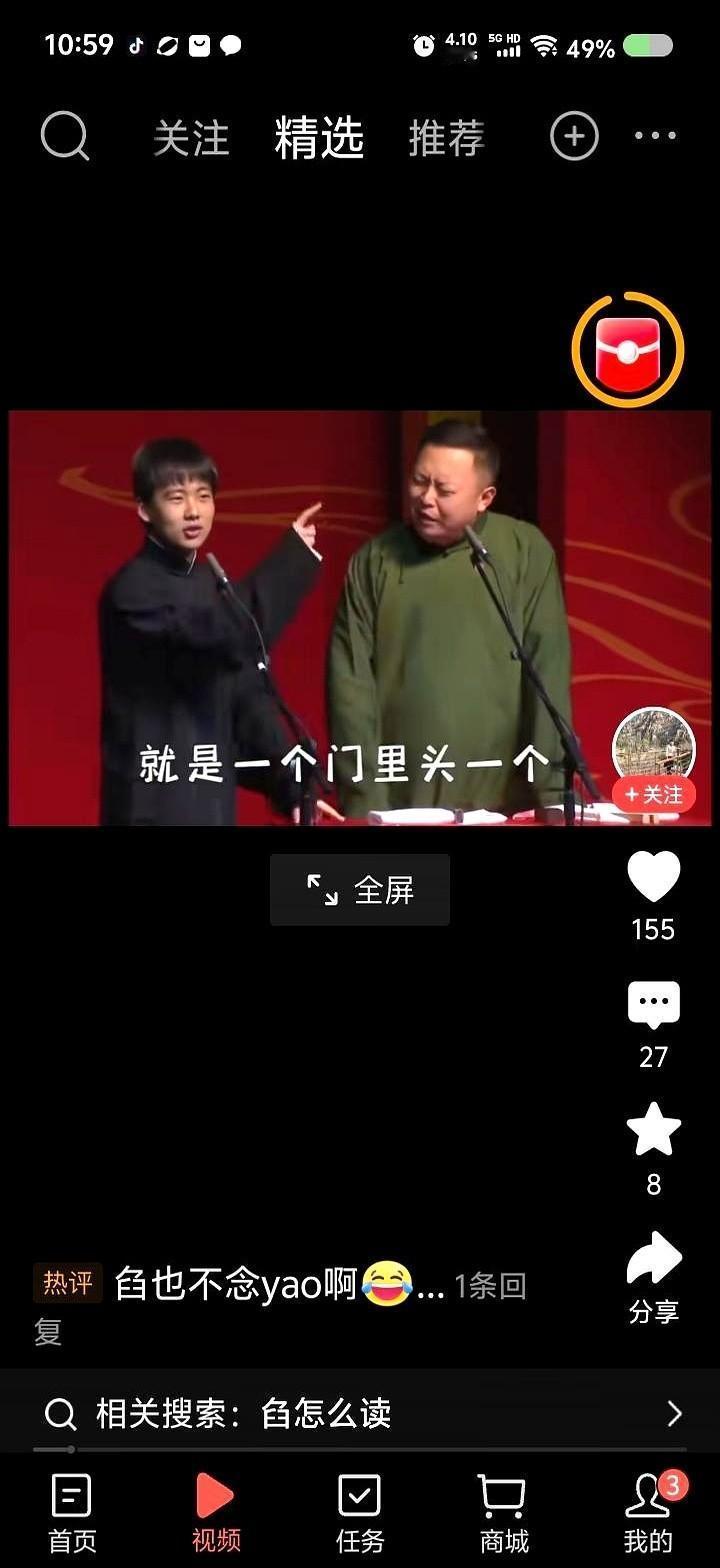 那天相声台上。 郭麒麟指着“阎”字笑:“门里一个臽(xián)。 ” 阎鹤祥赶紧