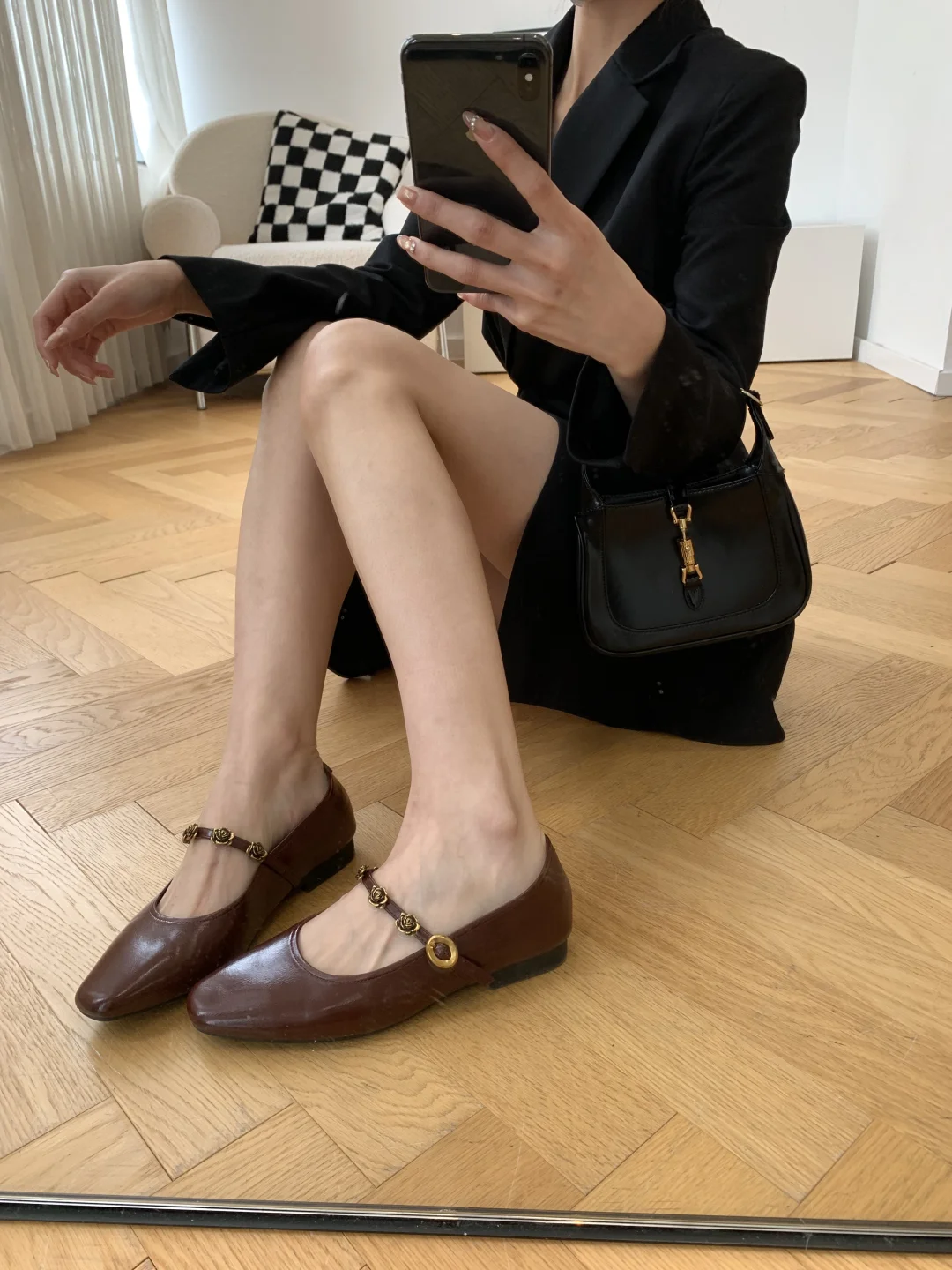 中古店淘不到的绝美单品!!! 一穿上就像穿越回了90年代~ 棕红色的漆皮,完全是老电影里舞鞋 玫瑰花扣更是点睛之笔,复古又吸睛👀 随意搭的条裙子都很出片! 复古穿搭 王小毒女鞋 玛丽珍鞋 红色单鞋