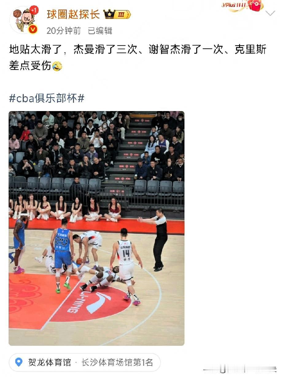 篮球名嘴:cba杯赛地贴太滑了!已经让多位球员滑倒,甚至受伤;恕我直言,最开始辽宁队外援小布朗已经三次滑倒,我还以为是他脚下无根,头重脚轻,陆陆续续看几天杯赛,发现有很多类似的情况。话说,杯赛也是联赛推广的一部分,哪家俱乐部也不希望自己球员在杯赛受伤且无缘常规赛。毕竟杯赛只是各队练兵场,所以主办方长点的,设计地贴后亲自评估一下。