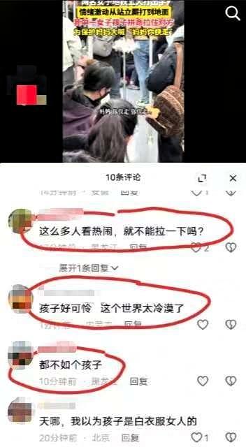 12月6日,杭州地铁上发生了一起让人震惊的事件。 俩女子动手时,旁边孩子哭着喊“妈妈你快走”,满车厢的成年人,没一个上前搭话,这种沉默比打架本身更让人难受。 那天车厢里人不少,俩女子不知因啥起了争执,一开始只是互相指责,后来就动了手,推推搡搡的,也没太激烈,但动静不小。 旁边的孩子,吓得直哭,拉着其中一个女子的衣服,一遍遍地说“妈妈别打了,快走”,声音不大,却带着慌。 车厢里的人反应各不相同,有人拿出手机拍,镜头对着她们;有人把头转向一边,要么看手机要么瞅窗外;还有人小声跟身边人议论两句,说“这点事至于吗”,可就是没人站起来说句“别吵了,有孩子呢”,更没人伸手拉一下。 后来视频发出来,评论里都在说车厢里的人冷漠,说看着孩子哭都不管。其实仔细想想,不全是冷漠,更多的是大家有顾虑。 现在谁都怕劝架惹麻烦,万一拉的时候没注意,碰着谁了,再被赖上;或者劝的时候说偏了,反而被其中一方指责,到头来吃力不讨好。还有人觉得,旁边人多,总会有人管,自己不用出头,这就是常说的“旁观者效应”,人越多,越没人愿意先站出来。 可那孩子不懂这些,他只知道害怕,想让妈妈停下来。其实大家不用非得冲上去拉架,哪怕大声说一句“别打了,孩子吓得哭呢”,或者按一下车厢里的按钮叫工作人员,都能起到作用,也不会让自己陷入麻烦。 公共场合遇到这种事,没人要求谁当英雄,只是别光看着。要是人人都想着“跟我没关系”,那遇到事的时候,身边也不会有人帮衬。