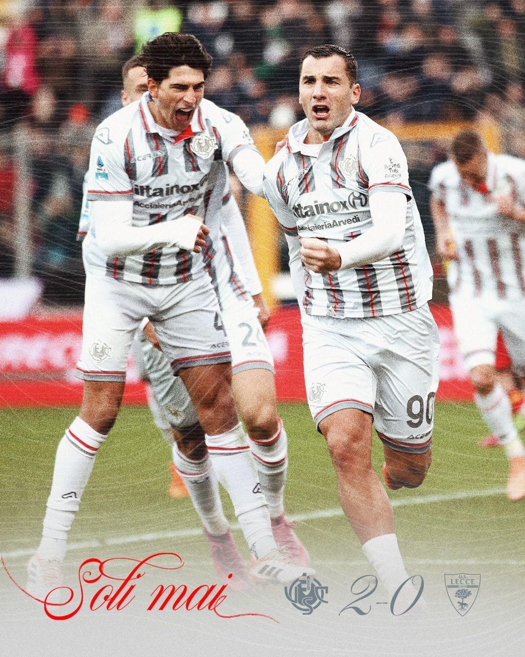 意甲联赛 克雷莫纳主场2:0击败莱切队,菲利波·泰拉恰诺🇮🇹、邦多🇫🇷(踢了68分钟)均首发出场;卡马尔达🇮🇹第67分钟替补出场。