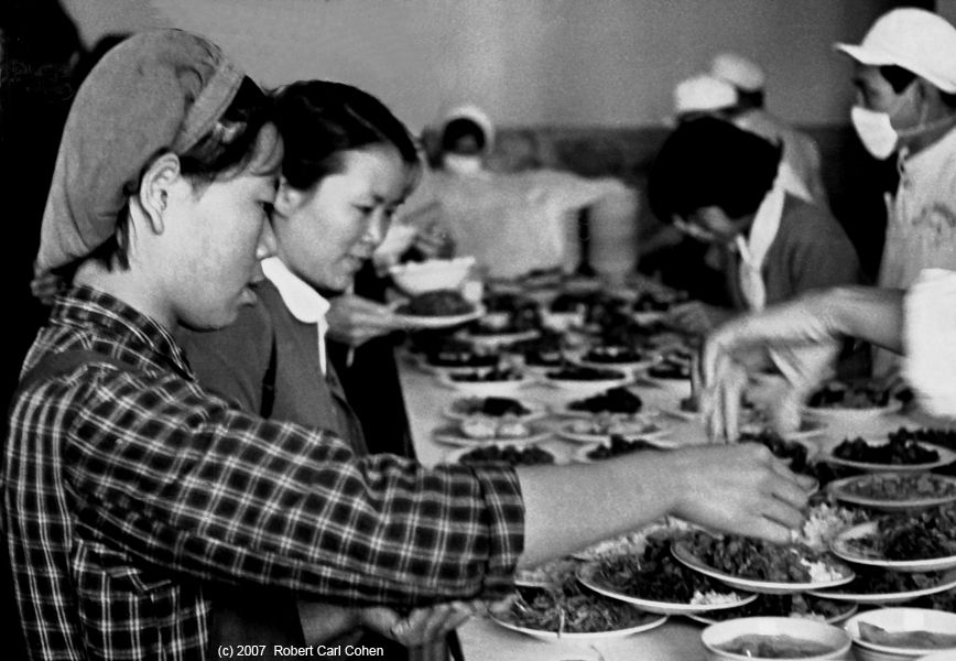 2017 年,一名朝鲜男子在鸭绿江上向游船上的中国游客出售物品。