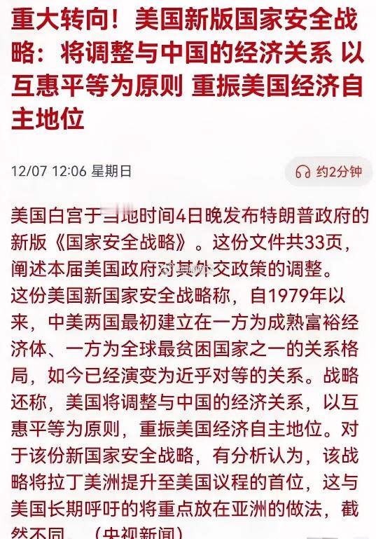 大利好!今天必定一根大阳线!美国新版国家安全战略的调整,对中国的影响呈现“短期摩擦与长期机遇并存”的特点:1. 经贸层面:美国以“互惠平等”调整对华经济关系,短期可能缓和部分消费品关税,但高端技术(半导体、高端制造)领域的供应链脱钩、技术管制仍会延续,倒逼中国出口企业优化结构、向高附加值领域转型。2. 产业层面:美国推动“经济自主”将加速中国半导体、工业母机、高端装备等领域的国产替代,政策与资金会进一步向自主可控赛道倾斜,新质生产力相关产业的商业化进程将提速。3. 区域层面:美国将重心转向拉美,既分散了其在亚太的战略资源,让中国在亚太的合作空间有所拓展;也推动中拉基建、物流合作深化,但中拉项目可能面临美国的间接干预。4. 内需层面:美国供应链脱钩的压力,会强化中国对内需市场的依赖,消费升级、设备更新等政策红利将持续释放,内需型企业的业绩确定性提升。受益概念股梳理1. $北方华创 sz002371$ :半导体设备龙头,覆盖刻蚀机、PECVD等核心设备,国产替代率持续提升,受益于美国供应链脱钩倒逼的自主化需求。2025年三季报营收增35%,绑定中芯国际等头部晶圆厂,大基金支持下技术突破加速。2. $拓荆科技 sh688072$ :国内唯一能量产PECVD的薄膜沉积设备商,半导体国产替代核心标的,订单已排至2026年。2025年营收增58%,获大基金三期投资布局三维集成设备,客户包括中芯国际、华虹半导体。3. $华中数控 sz300161$ :工业母机数控系统龙头,“华中10型”集成AI芯片,市占率达18%,已切入中国商飞供应链。受益于美国制造业回流倒逼的国产设备替代,2025年订单量同比增35%,政策补贴增厚利润。4. 科德数控:五轴机床标杆,自主化率85%,加工精度达3μm,军工订单占比超40%、毛利率52%。受益于高端制造自主可控及军工装备升级,2025年北向资金增持,券商给予“买入”评级。5. 中远海控:持有秘鲁钱凯港60%股权,该港是中拉物流枢纽,可将中拉运输时间从45天缩至23天。受益于美国拉美议程下的中拉贸易增长,2025年钱凯港一期运营后吞吐量将达100万标箱。6. 中国交建:主导钱凯港、两洋铁路等中拉基建,拉美市场占有率超30%。受益于美国重心转拉美后的中拉合作深化,2025年海外订单占比预计达40%,当前市盈率仅6倍,估值修复空间大。7. 汇川技术:高端装备核心部件龙头,覆盖工业自动化、新能源电控,客户包括三一重工、宁德时代。受益于新质生产力政策及美国供应链脱钩下的国产替代,2025年三季度营收增21%。8. 秦川机床:机器人滚珠丝杠核心供应商,突破P2级技术,成功供货特斯拉人形机器人。受益于人形机器人商业化及美国高端制造竞争下的国产替代,2025年三季度营收增12%,产能扩张稳步推进。9. 天岳先进:碳化硅衬底龙头,6英寸产能利用率95%,8英寸产品已小批量出货。受益于新能源汽车功率器件需求及美国半导体材料限制下的国产替代,2025年营收增48%,毛利率达42%。10. 盛美上海:清洗设备全球第四,市占率8%,国内单片清洗设备市占率超30%,拓展炉管、涂胶显影设备。受益于半导体国产替代,2025年净利润增67%,定增募资44.82亿元加码研发。11. 中际旭创:全球光模块龙头,800G产品占英伟达供应链40%份额,泰国工厂规避贸易壁垒。受益于美国AI算力需求及关税缓和,2025年北美订单占比提升,业绩弹性充足。12. 立讯精密:苹果AirPods代工龙头,对美出口占比超40%,关税每降10%可增厚净利润5%-8%。同时切入AI硬件供应链,受益于美国关税缓和及消费电子复苏,订单量稳步增长。13. 顺丰控股:综合物流龙头,高端时效件需求增长,受益于内需消费复苏及中拉贸易物流增量。2025年全国快递业务量破1800亿件,公司自动化降本增效显著,利润率持续改善。14. 中国中免:免税龙头,受益于扩内需政策及海南自贸港红利,美国重心转拉美后国内消费升级动力增强。2025年政策放宽外资准入,免税业态与文旅融合加速,业绩增长确定性高。15. 宁德时代:动力电池全球市占率37%,美国储能市场依赖度55%,泰国工厂规避关税。受益于美国新能源需求及供应链多元化,2025年海外订单增势强劲,储能业务成第二增长曲线。总结美国此次战略调整,本质是在中美“近乎对等”的定位下,平衡对华竞争与自身经济自主的需求。对中国而言,短期需应对部分领域的博弈,但长期将加速自主可控产业的突破、拓展区域合作空间,这些受益股,核心逻辑围绕“自主可控、中拉合作、内需复苏”三大主线,既契合政策导向,也具备业绩兑现能力。不过需注意,部分领域仍面临美国技术管制的风险,后续需跟踪企业技术突破及项目落地进度。本文涉及资讯、数据等内容来自网络公共信息,仅供参考,不构成投资建议!