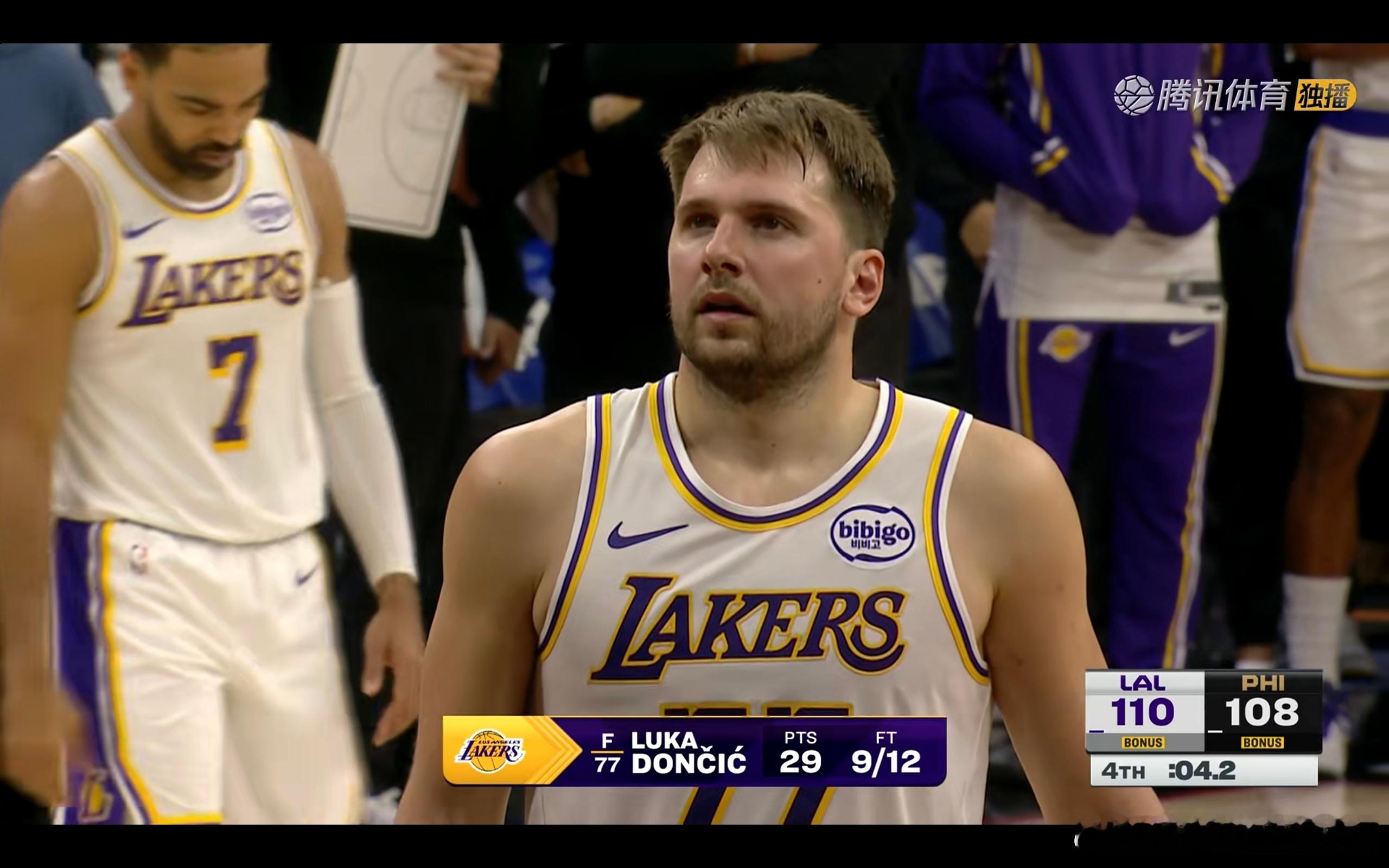 湖人反超3分进入第四节,东契奇27分14板9助,詹姆斯17分湖人vs76人