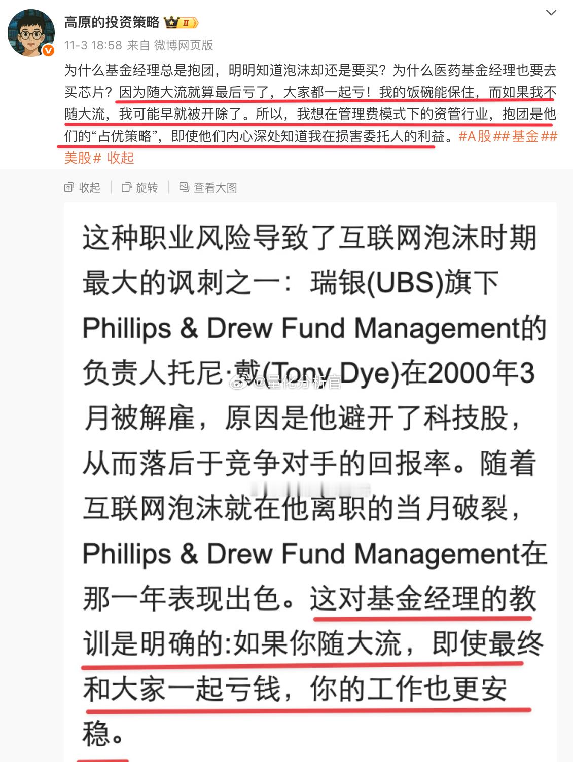 周末刚出一个《基金管理公司绩效考核管理指引》,指引要求过去三年跑输基准10%且基金三年来总收益为亏损的基金经理绩效奖金降薪30%,那么问题来了,你如果是盐碱地的基金经理你会怎么办???答案是显然的,我将更加肆无忌惮地抱团,大家一起涨、一起跌,崩盘死了大家一起玩儿完,都完蛋,大家都惨,也就不存在跑输的问题了。你看,今天AI板块易中天们的抱团更加肆无忌惮了A股天孚通信中际旭创