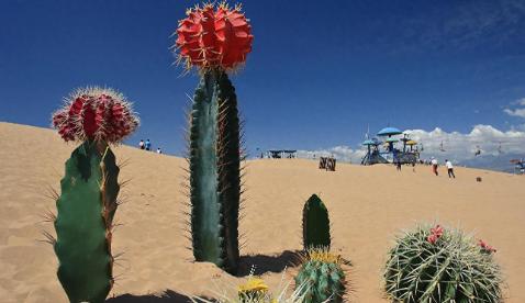 中国治沙为何选梭梭,不选仙人掌?别被“耐旱”蒙蔽了双眼 提起沙漠植物,很多人可能会想到仙人掌。但奇怪的是咱们一代代治沙人好像从来没用过仙人掌治沙,甚至在我国沙漠里也几乎没有仙人掌的身影。这是咋回事呢? 仙人掌的老家是在美洲热带沙漠,能在40度的沙子里打滚儿,可咱西北的沙漠是温带沙漠,冬天能冻到零下30度。 就说内蒙古磴口县,2021年腊月零下28度,沙蒿都冻得发脆,仙人掌那怕冷的性子哪儿扛得住? 新疆治沙站的老张头试过,从云南运了两车仙人掌苗,头年冬天全成了"冰柱子",开春扒开沙子 看,根都烂成泥了。 这可不是耐寒品种能解决的——就算有个别耐寒的高山仙人掌,您想想,西北的沙暴能把碗口粗的红柳连根拔,仙人掌那10厘米的浅根,跟火柴棍儿似的,风一刮直接"坐飞机",2018年甘肃民勤就出过这事,仙人掌苗被风吹得满公路跑,差点撞上运水车。 再说这繁殖的事儿。仙人掌在老家有天敌管着,螟蛾幼虫专啃它的茎,白喉林鼠爱嗑它的根,可到了咱这儿,天敌没了,性子就野了。 云南元谋的老乡最清楚,2000年前后仙人掌顺着金沙江滩疯长,一夜间能占半亩地,甘蔗地都被挤得长不出苗。治沙是要在沙地里扎根,可不是请个"霸王"来占地盘。 新疆林科院的王工算过账:一棵梭梭一年能固10平米沙地,一棵仙人掌撑死固2平米,还得防着它到处"跑"。 转头看梭梭,人家天生就是西北的"沙窝子住户"。新疆塔克拉玛干沙漠边缘,梭梭的根能扎10米深,像老农用铁钩子扒住沙子。 2015年修沙漠公路,推土机推过的地方,梭梭苗第二天就发芽,三天就能看见新绿。这发芽速度是真绝——种子遇水3小时就冒根,比沙漠里的雨后蘑菇还快。 甘肃民勤的治沙站有个老规矩,雨后24小时必须全员下地种梭梭,就怕错过这"黄金三小时"。 再说耐寒,梭梭的木质部像老棉袄,秋末就裹满糖分,零下40度也冻不坏。2020年阿勒泰那场寒潮,梭梭的枝条冻得发紫,开春照样冒新芽。 内蒙古磴口的治沙人发现,梭梭的灰白色树干会"反光",夏天沙地表面70度,树皮能把热浪弹回去,树干里还凉飕飕的。 这还不算,梭梭的叶子退化成鳞片,枝条却能光合作用,像把水分锁在"绿色吸管"里,年降水50毫米的地方也能活,比仙人掌的"储水罐"茎秆更省水。 最绝的是生态账。梭梭林下能长苔藓,能养沙鼠,树根还寄生着肉苁蓉——这玩意儿一斤能卖200块,民勤的老乡靠这个盖了新房。 反观仙人掌,除了扎人没别的用处,牛羊都不吃。2019年宁夏试过在沙边种仙人掌当"活篱笆",结果沙没挡住,反而成了老鼠的避难所,沙鼠在仙人掌丛里打洞,反而加速了沙丘流动。 您可能要问,为啥不试试改良仙人掌?治沙人不是没试过。2005年中科院新疆生地所杂交出耐寒仙人掌,可种下去三年,根系还是扎不深,一场春旱就死了八成。 老治沙人李大爷说得实在:"梭梭是喝着西北风长大的,仙人掌是泡着糖水长大的,水土不服就是水土不服,改不了基因。" 现在走在塔克拉玛干沙漠公路,两边80%的绿植都是梭梭,远远看去像一道绿色长城。 治沙这事儿,从来不是选"最耐旱",而是选"最听话"——能扎根、能固沙、能活成一片,还能给沙地带来生机。 仙人掌再好,终究是别人家的孩子,梭梭才是咱西北沙地土生土长的"治沙老把式"。这道理,就像老辈人说的:"穿惯了千层底,不羡慕皮鞋亮。"