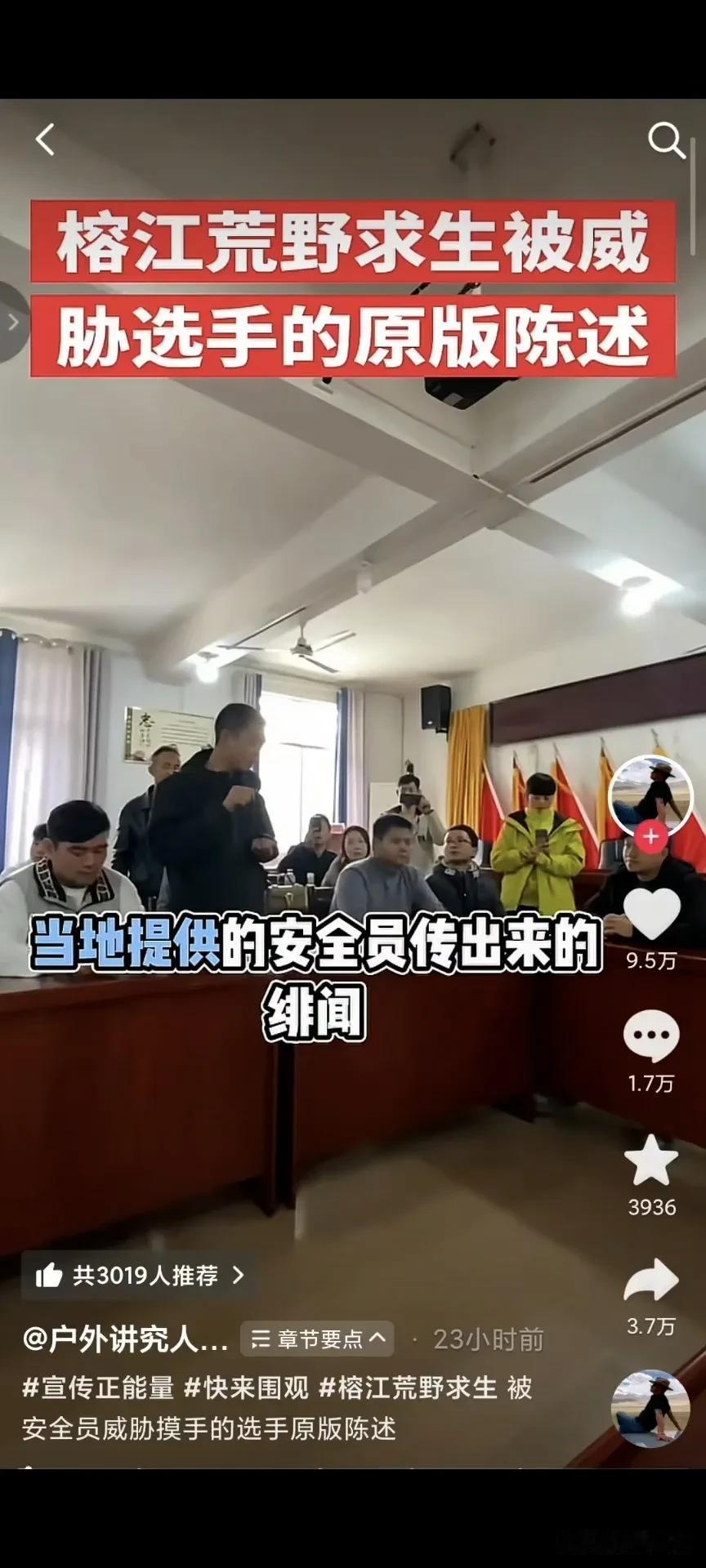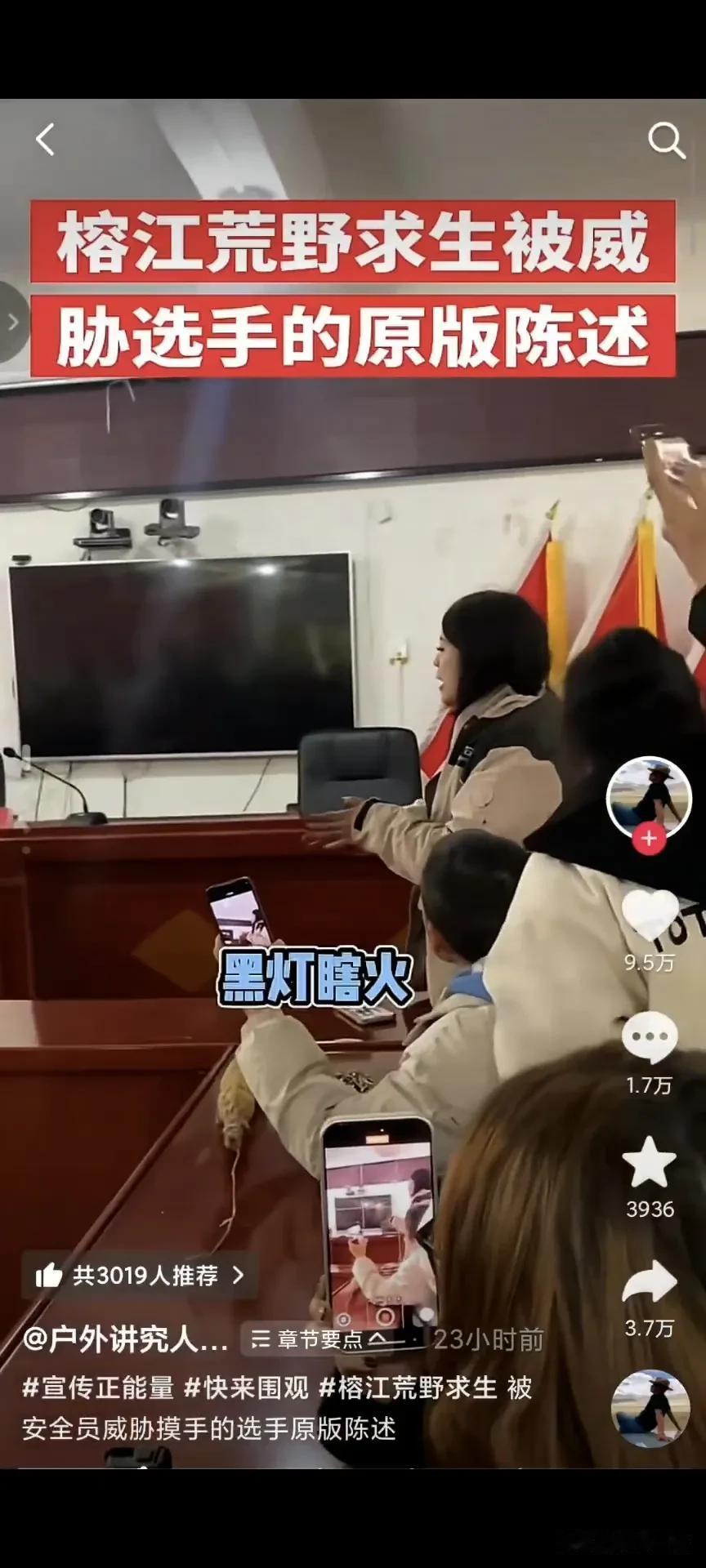 荒野求生,竟然也能和潜规则挂边,这样恶劣的环境下,居然还有这心思,三番五次的整她,女选手也不惯着他,直接撕破脸皮,比赛都停了。 事情发生在贵州的榕江荒野,一名安全员骚扰女选手,暗示可以帮她进决赛,同意的话,每天两只火腿肠,选手装作听不懂,含蓄的拒绝,这名安全员趁选手不在的时候,直接把她的篝火灭了,晚上这么冷的天气,搞了三个小时才升起来。 第二天女选手我来大姨妈了,问他要卫生巾,他说领导发话只能给一块,这很明显是在针对她,这场比赛就没必要进行了,当场翻脸,跟他们领导反应的情况下,那名安全员还想进来打她。 这位安全员还是当地安排的,如果能够证实他猥一亵选手的话,要进去待一段时间,影响太大了。 安全员主要保护的是选手的安全和维护赛场的秩序,没想到就变成了他谋取私利的工具,还干出骚扰女选手的情况,真的是因为一个人毁了一场赛事,这下是真的出名了,这事要是不处理好,后面的挑战也会受到影响。
