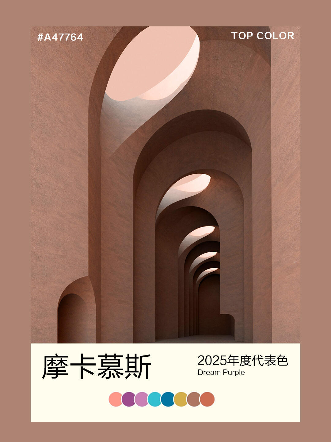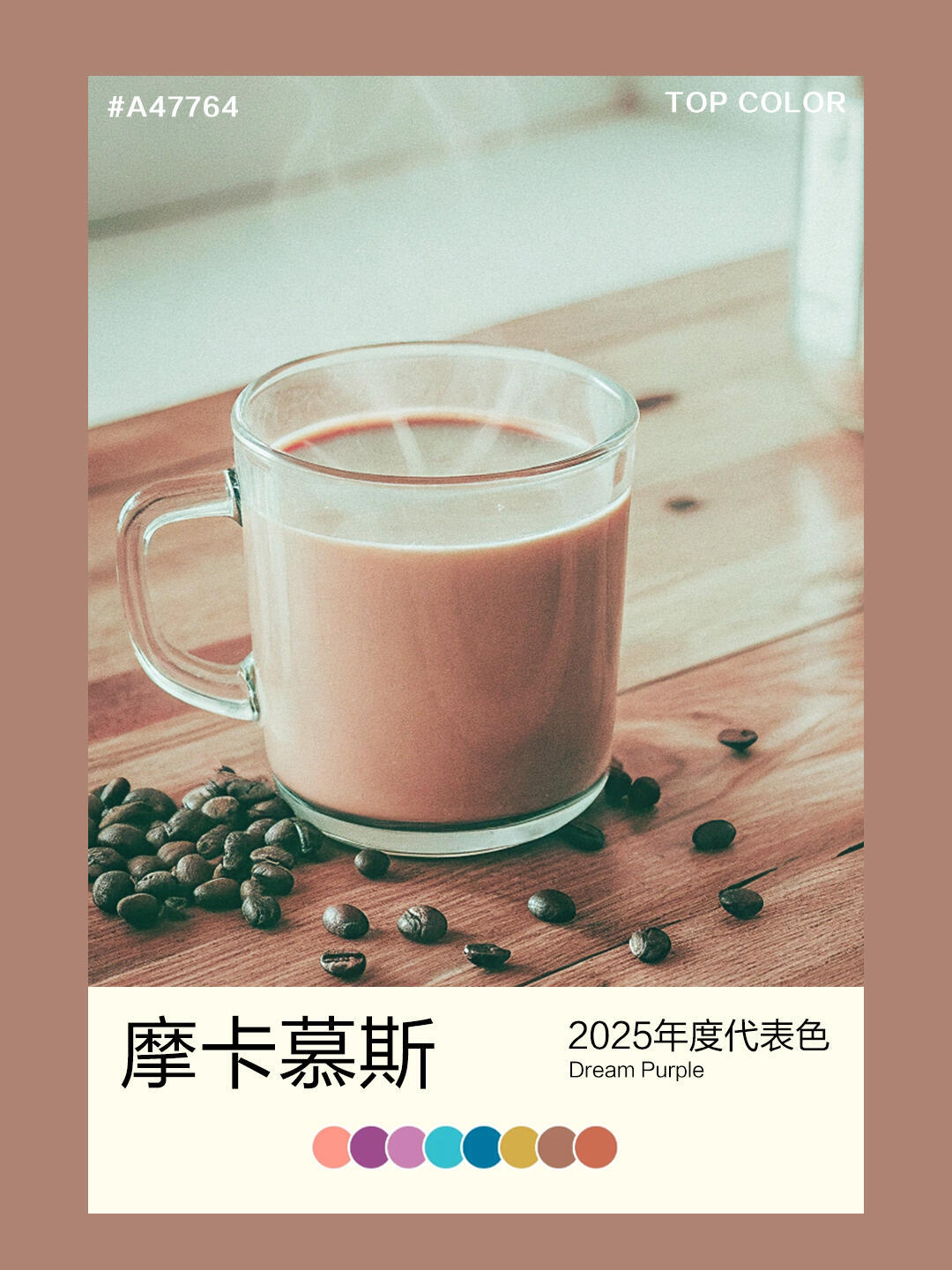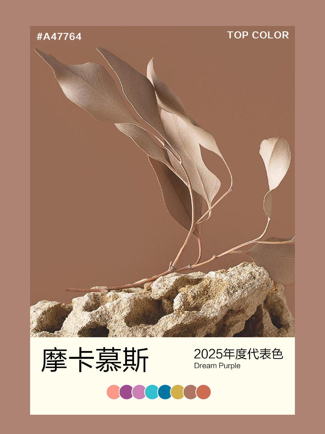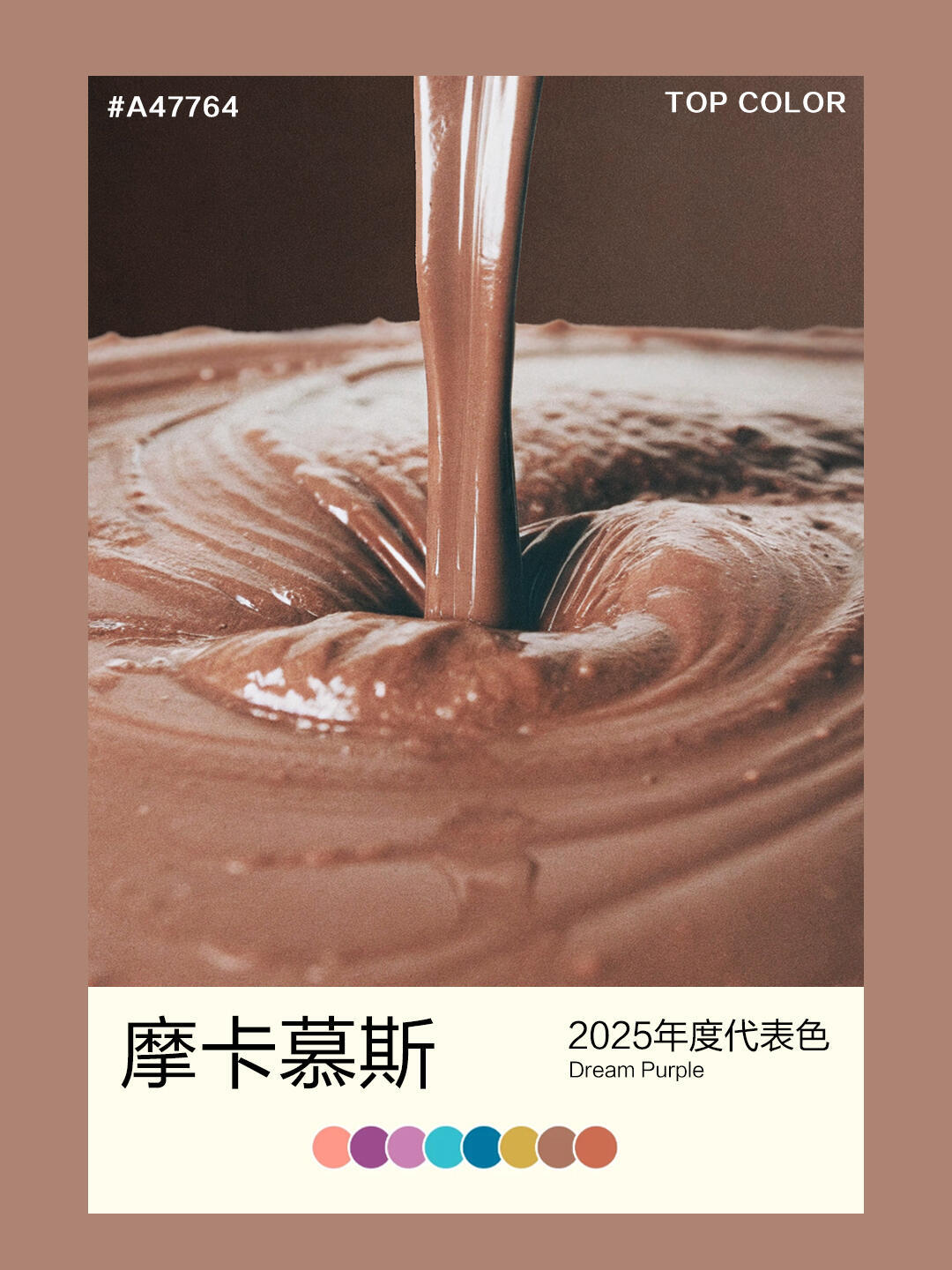 摩卡慕斯风格大赏2025年色彩记忆潘通2025年度代表色是“摩卡慕斯”(色号PANTONE 17-1230),这是一款像可可、巧克力般温暖浓郁的柔和棕色,自带治愈感。它打破了棕色的传统印象,既低调优雅又不失精致奢华,还特别百搭——不管是皮革、绒布等材质,还是极简、华丽等风格都能适配。日常用超实用:和大地色搭配显舒适,加金属元素能提高级感,不管是服装、家居装饰还是品牌设计,用它都能传递现代与经典融合的质感,还能带来感官上的温暖与自在。