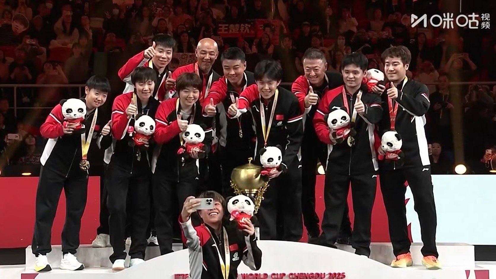 2025年国际乒联混合团体世界杯决赛中,中国队8-1战胜日本队,延续不败记录豪取11连胜蝉联赛事冠军!恭喜国乒所有队员!
