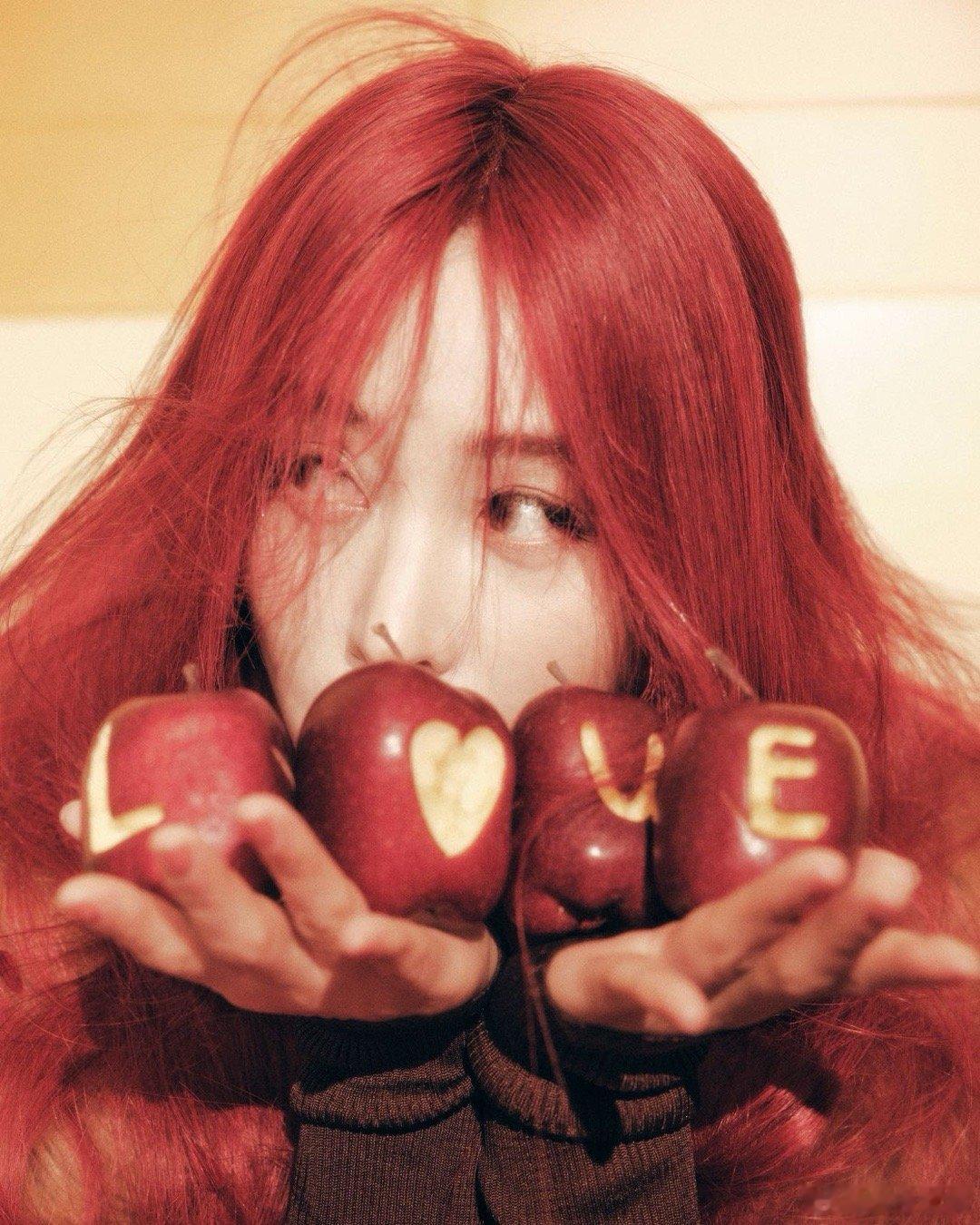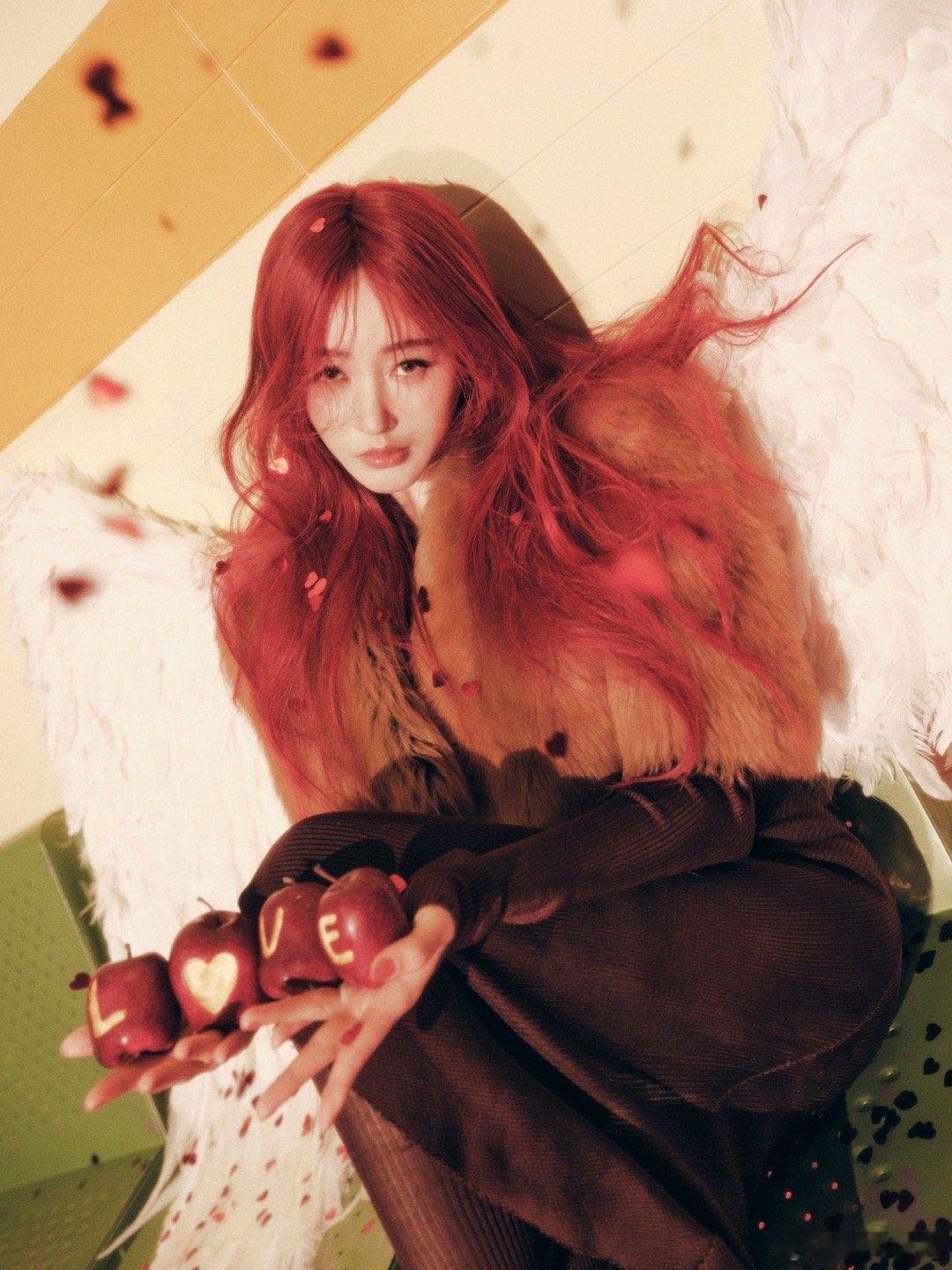 张天爱红长直 张天爱红发长直造型杀疯!热烈红发自带高光,柔顺质感让人忍不住想摸。手捧苹果慵懒勾人,白翅膀点缀更显灵动,氛围感美人非她莫属!