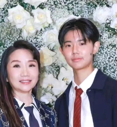 陶晶莹和女儿合照,女儿中分短发头,穿休闲西装,五官眉眼非常英气,胸脯平坦,怎么看都像是个男孩子!而且母女俩长得超像,尤其是眉宇间非常像!